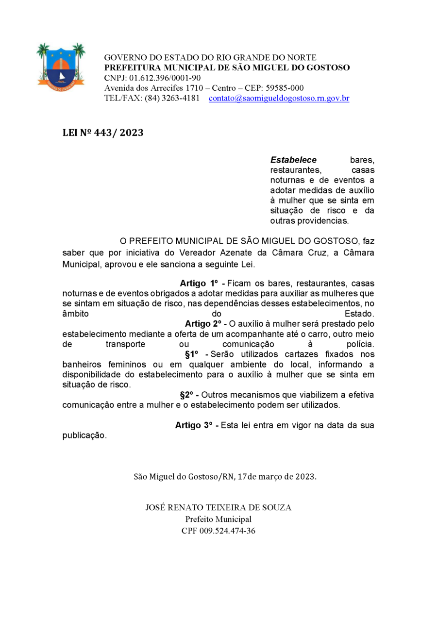 Conforme MP n° 2.200-2 de 24/08/2001, que institui a infraestrutura de chaves Públicas. Matéria Publicada no Diário Oficial do Município de São Miguel do Gostoso/RN no dia - Edição 00541.