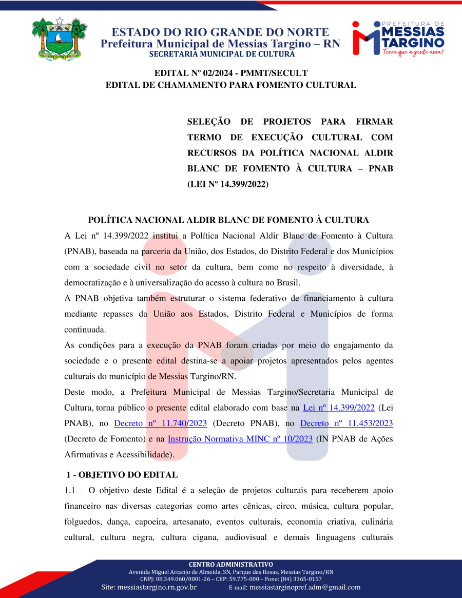 EDITAL Nº 02/2024 - PMMT/SECULT EDITAL DE CHAMAMENTO PARA FOMENTO CULTURAL