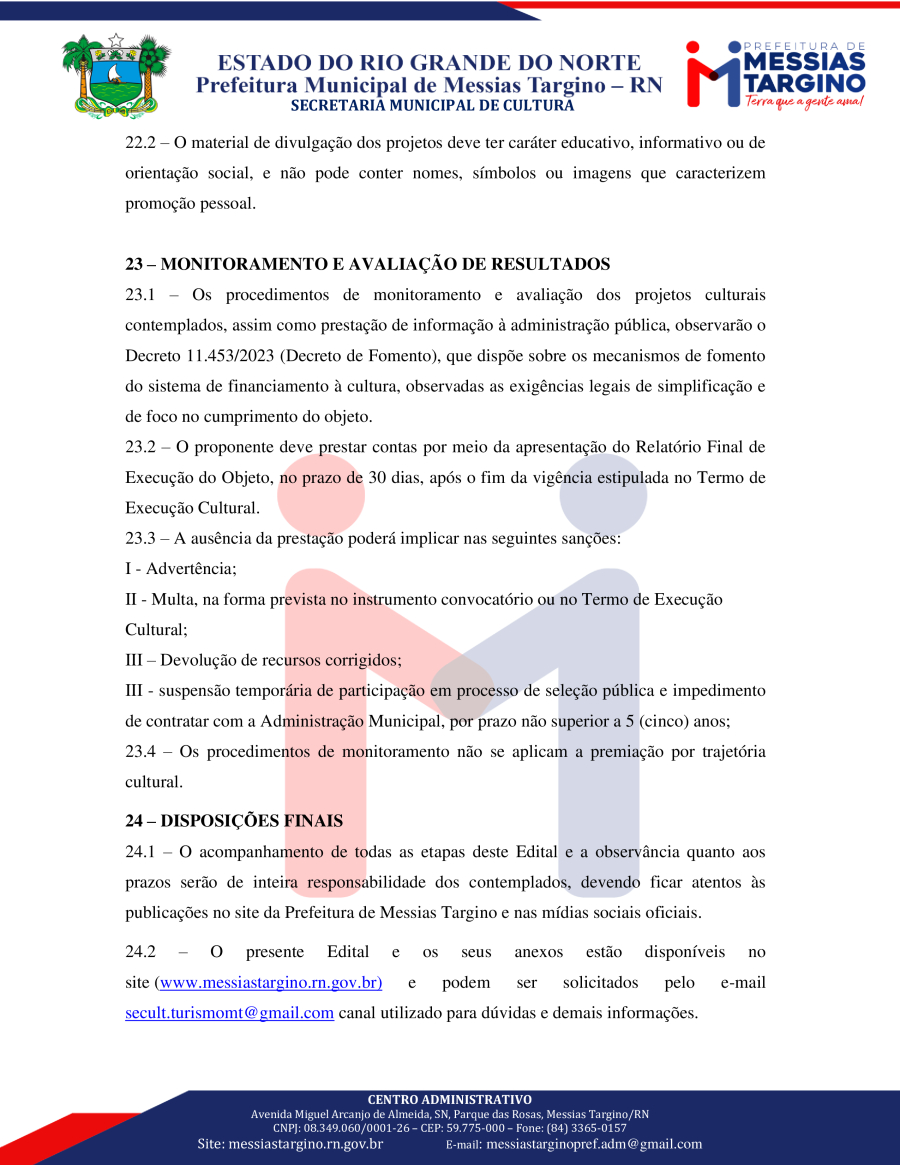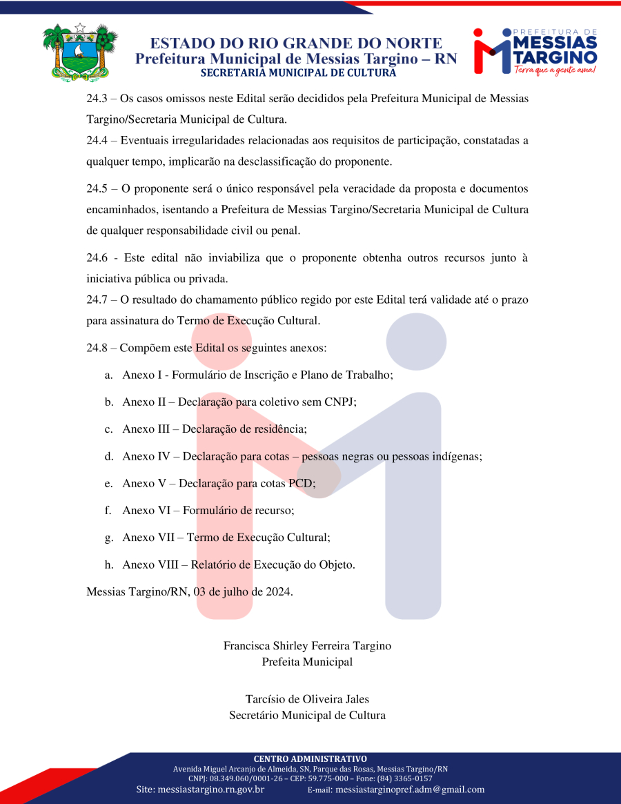 Conforme MP n° 2.200-2 de 24/08/2001, que institui a infraestrutura de chaves Públicas. Matéria Publicada no Diário Oficial do Município de Messias Targino/RN no dia - Edição 01074.