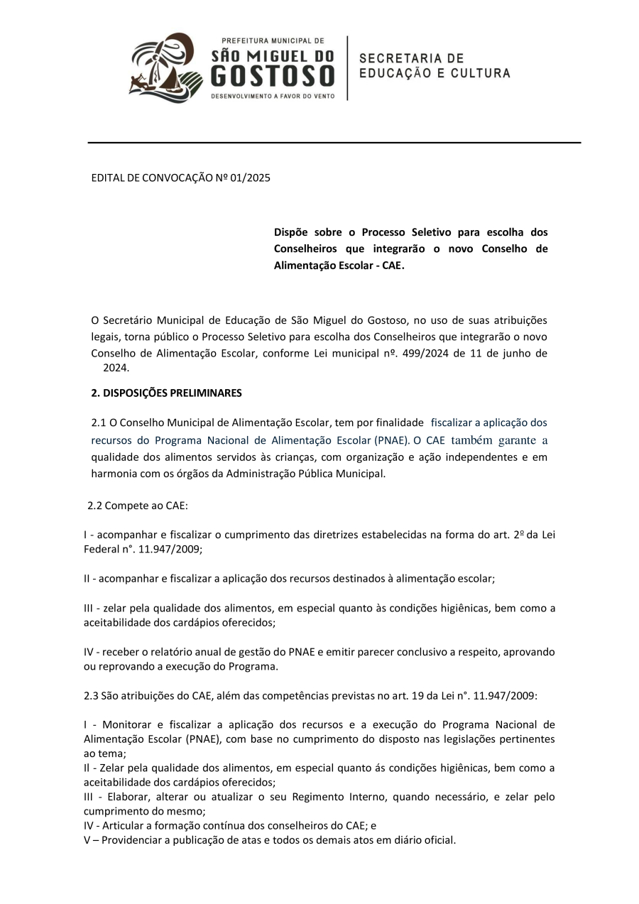 EDITAL DE CONVOCAÇÃO Nº 01/2025