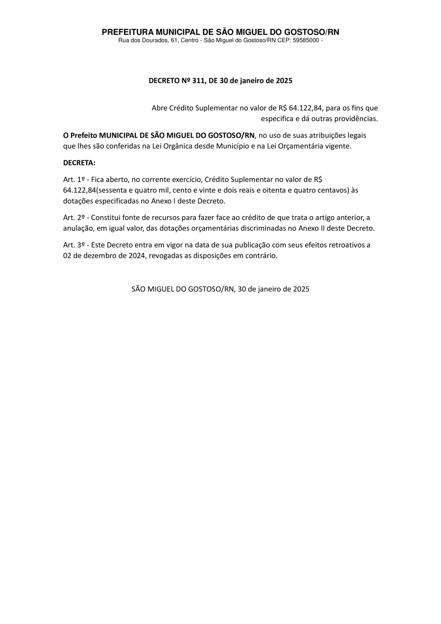 DECRETO DE ANULAÇÃO DE DOTAÇÃO 311