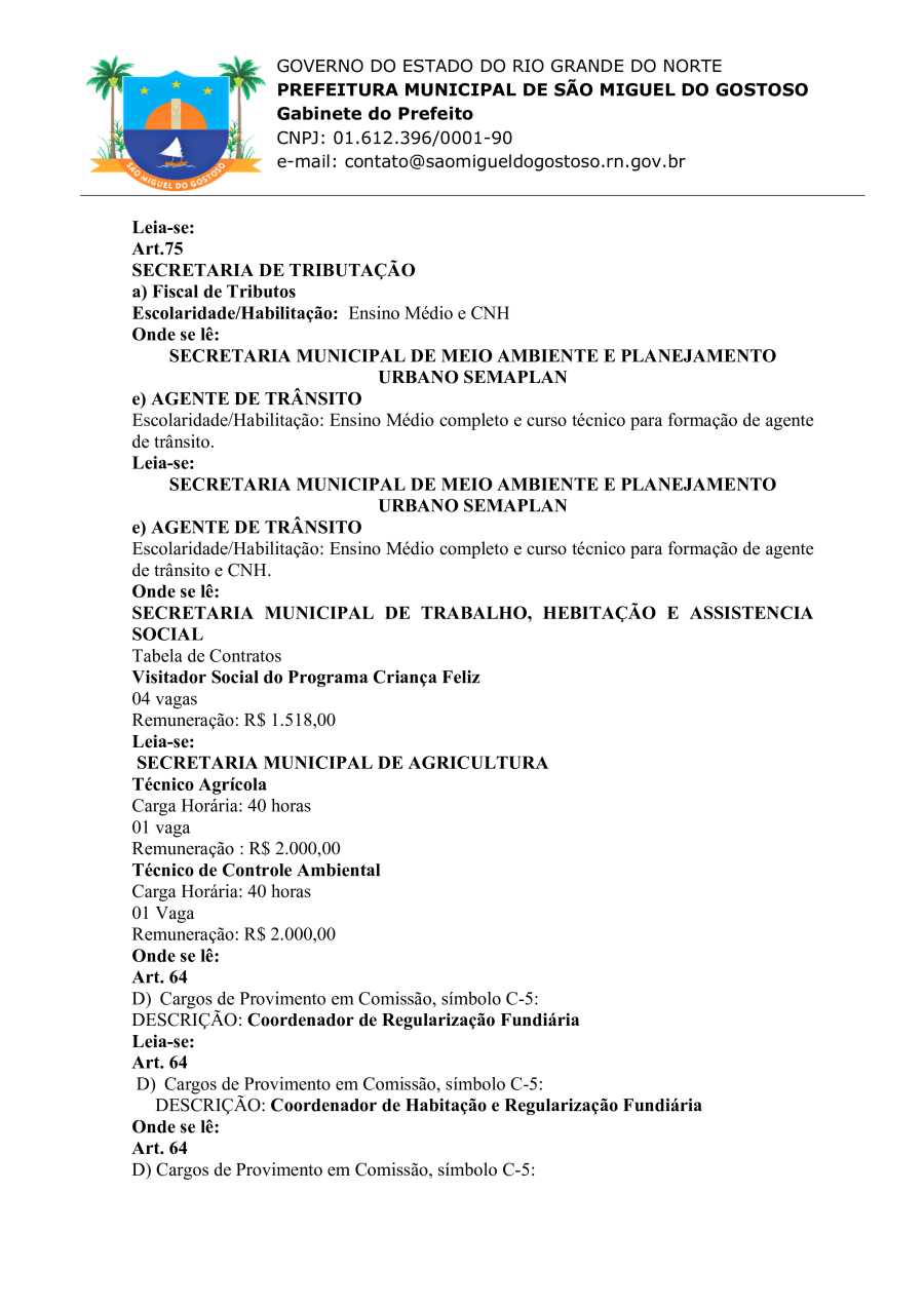 Conforme MP n° 2.200-2 de 24/08/2001, que institui a infraestrutura de chaves Públicas. Matéria Publicada no Diário Oficial do Município de São Miguel do Gostoso/RN no dia - Edição 01018.
