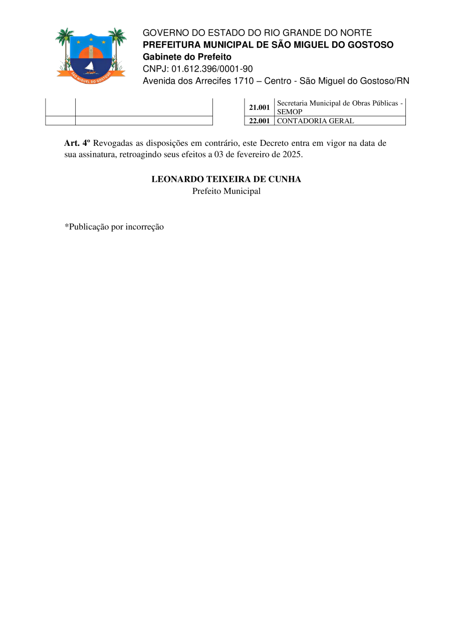 Conforme MP n° 2.200-2 de 24/08/2001, que institui a infraestrutura de chaves Públicas. Matéria Publicada no Diário Oficial do Município de São Miguel do Gostoso/RN no dia - Edição 01041.