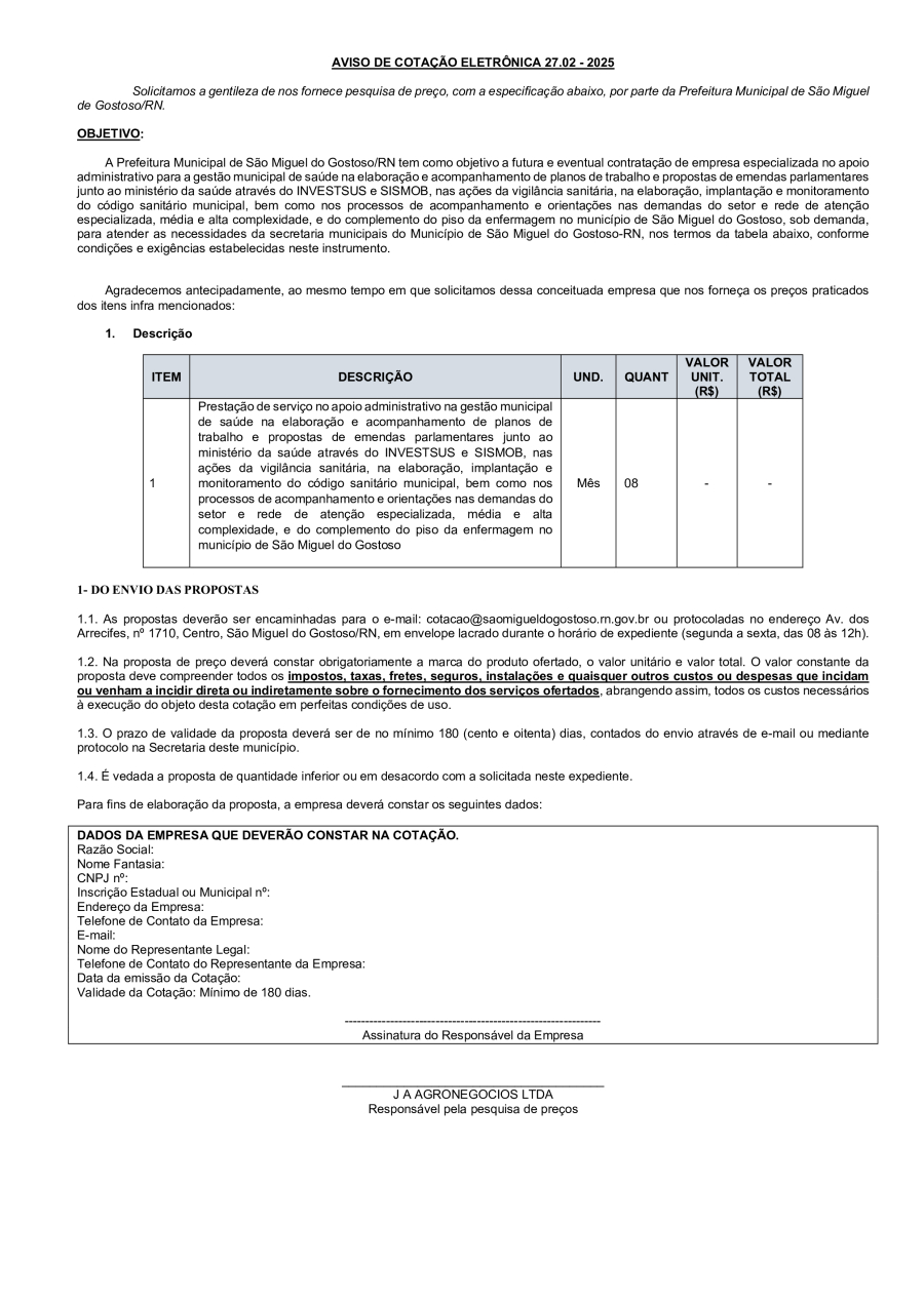 AVISO DE COTAÇÃO ELETRÔNICA 27.02 - 2025