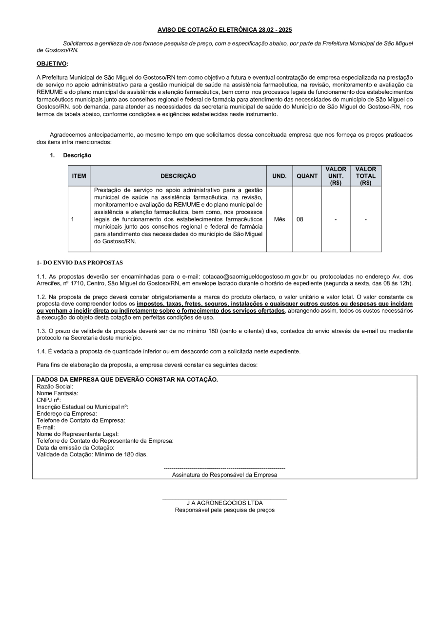 AVISO DE COTAÇÃO ELETRÔNICA 28.02 - 2025