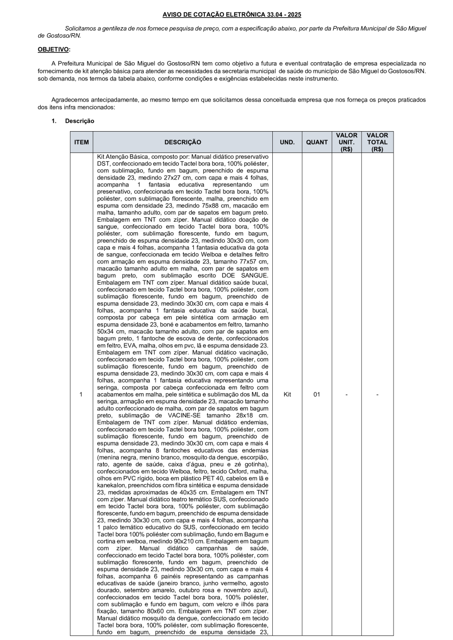 AVISO DE COTAÇÃO ELETRÔNICA 33.04 - 2025