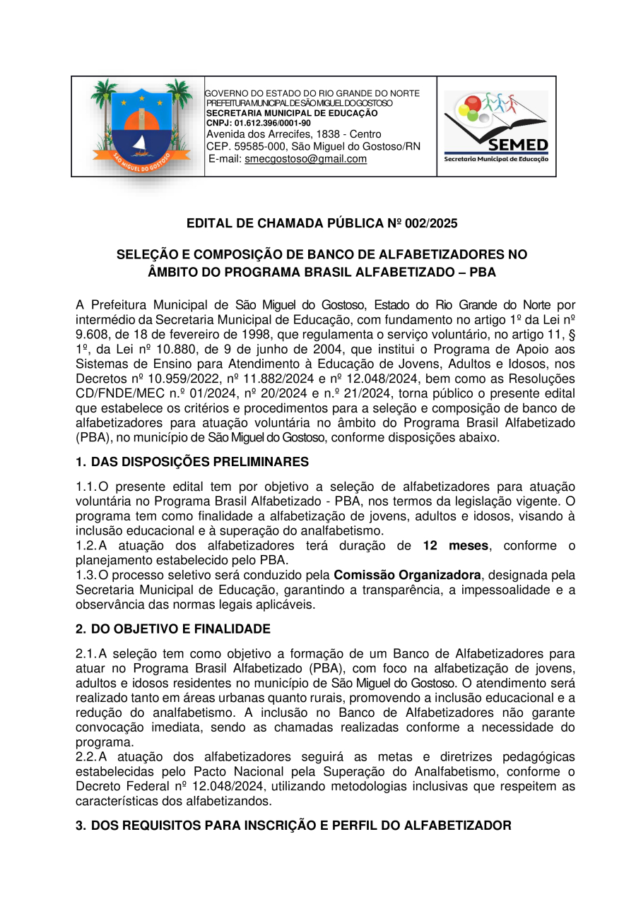 Conforme MP n° 2.200-2 de 24/08/2001, que institui a infraestrutura de chaves Públicas. Matéria Publicada no Diário Oficial do Município de São Miguel do Gostoso/RN no dia - Edição 01068.