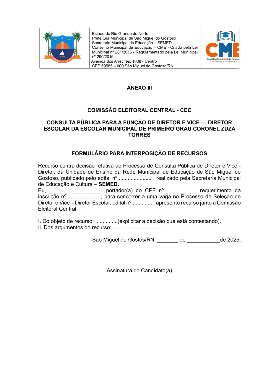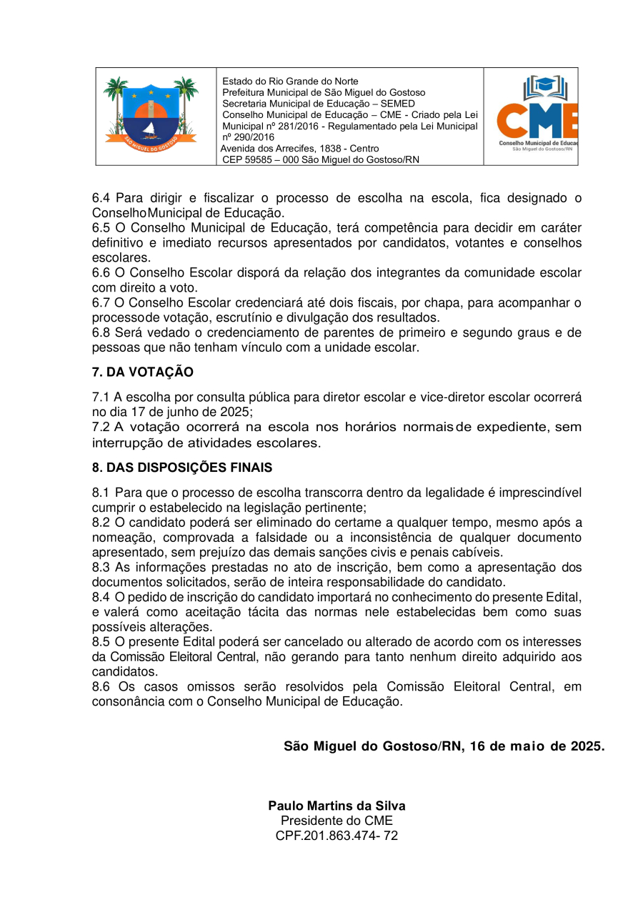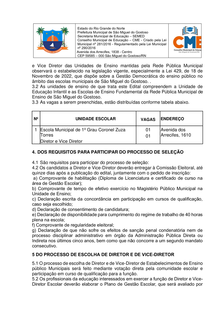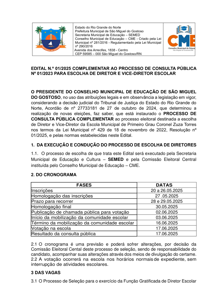 EDITAL 01 COMPLEMENTAR DO CONSELHO MUNICIPAL DE EDUCAÇÃO