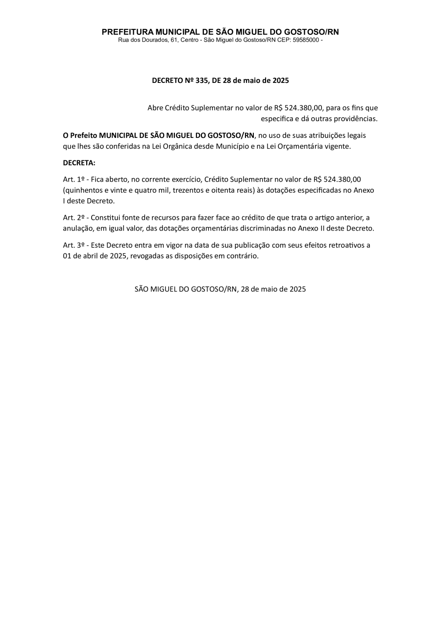 DECRETO ANULAÇÃO DE DOTAÇÃO 335