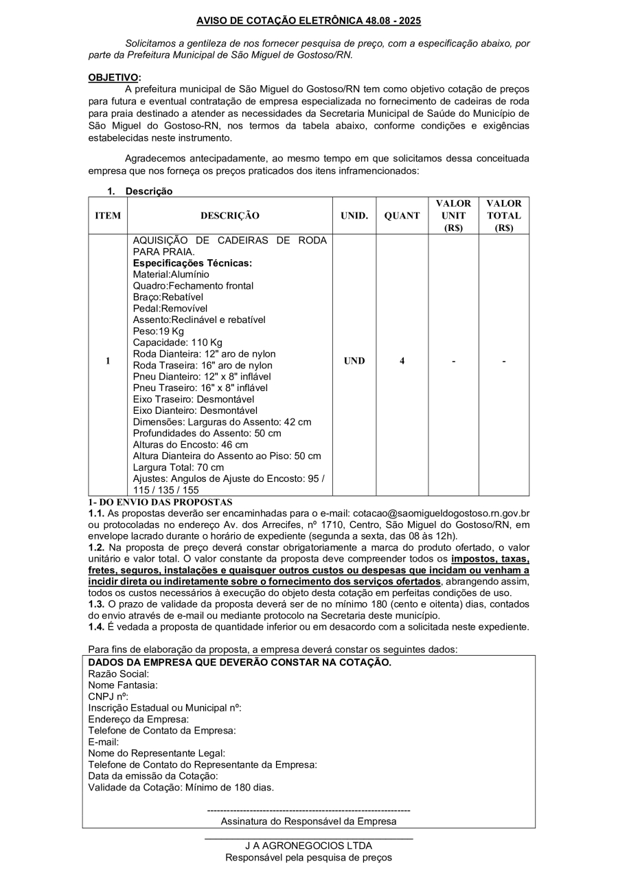 AVISO DE COTAÇÃO ELETRÔNICA 48.08 - 2025