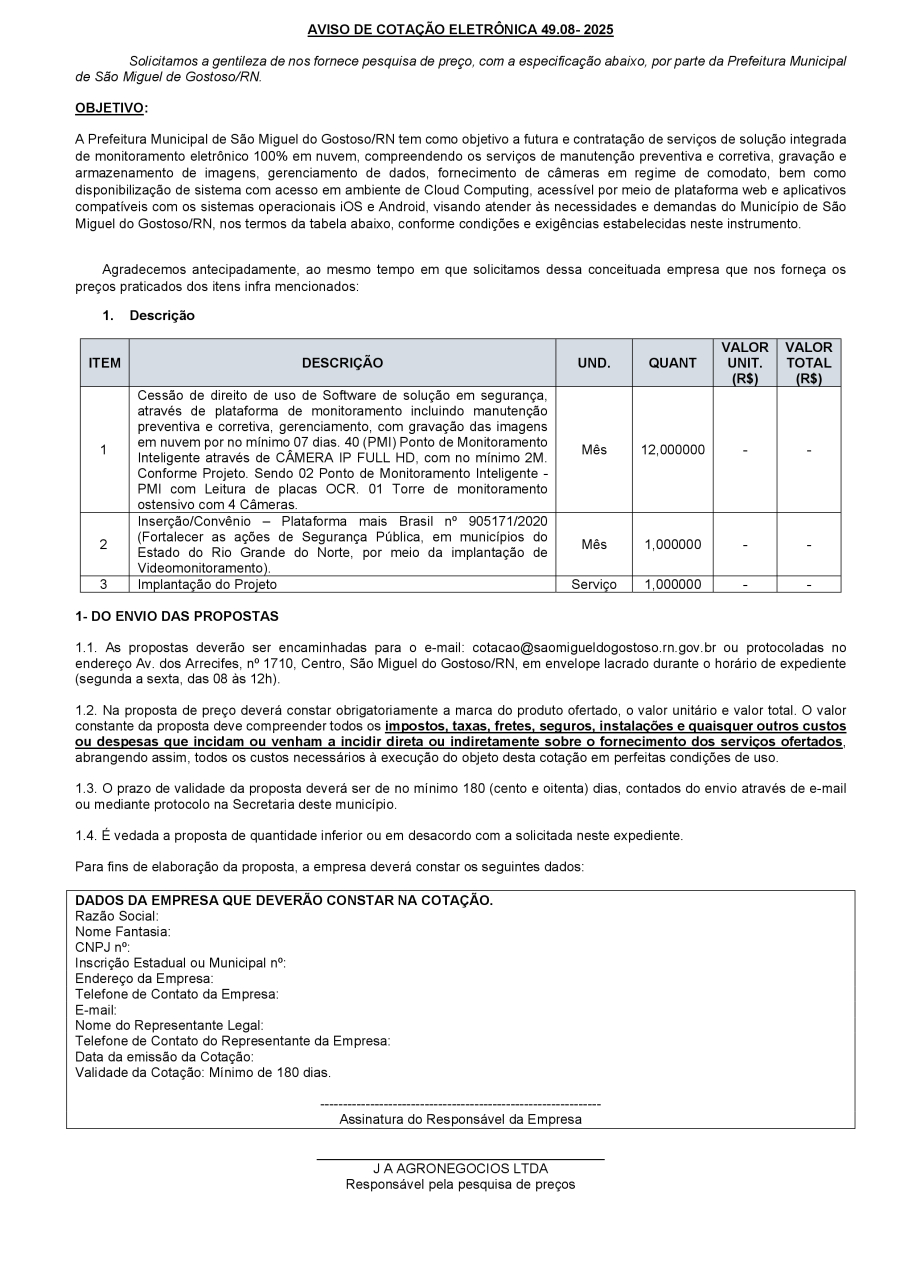 AVISO DE COTAÇÃO ELETRÔNICA 49.08 - 2025
