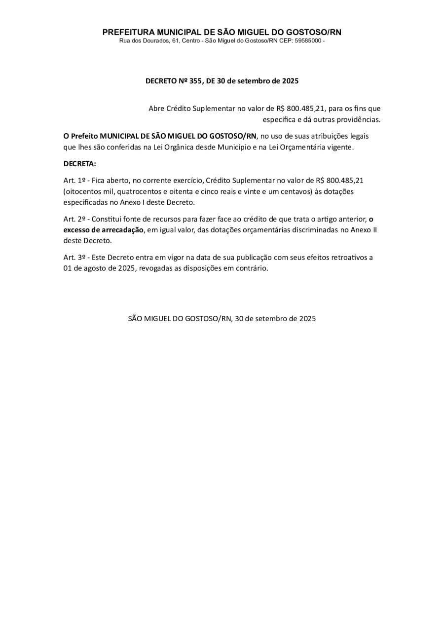DECRETO EXCESSO DE ARRECADAÇÃO 355
