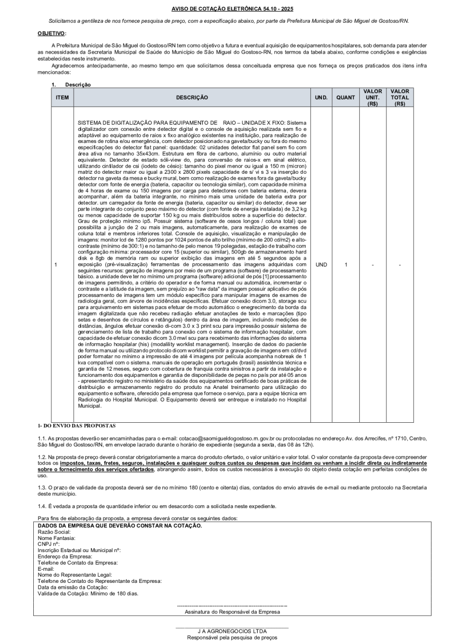 AVISO DE COTAÇÃO ELETRÔNICA 54.10 - 2025
