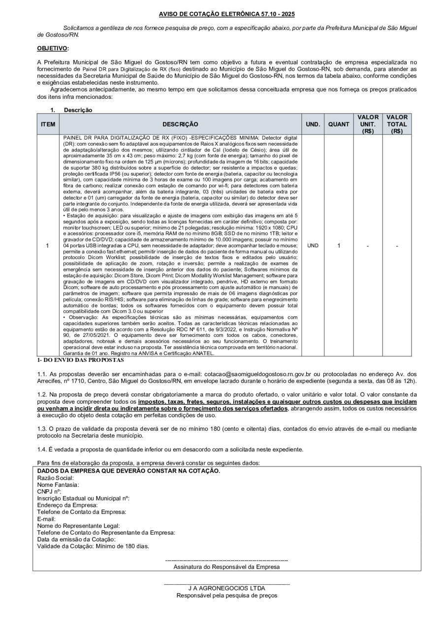 AVISO DE COTAÇÃO ELETRÔNICA 57.10 - 2025