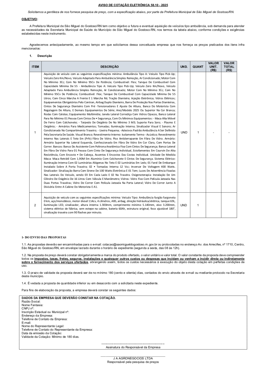 AVISO DE COTAÇÃO ELETRÔNICA 58.10 - 2025