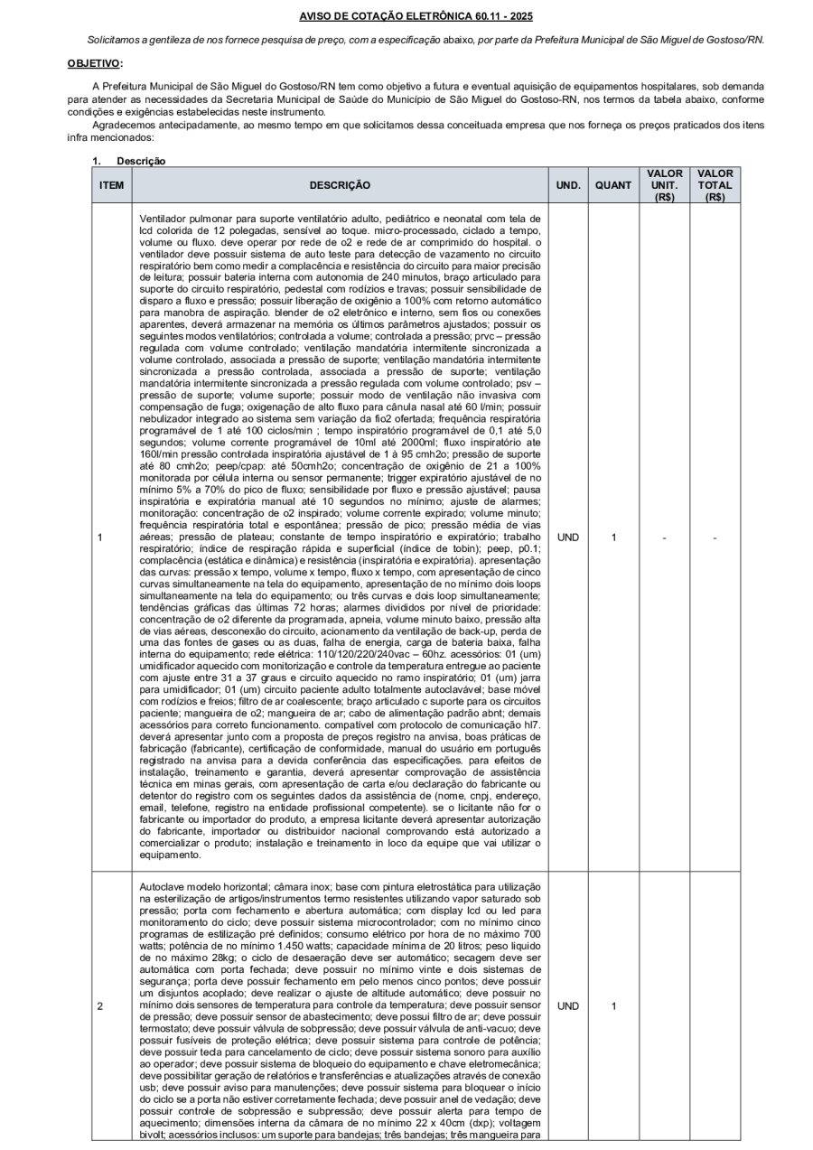 RETIFICAÇÃO - AVISO DE COTAÇÃO ELETRÔNICA 60.11 - 2025