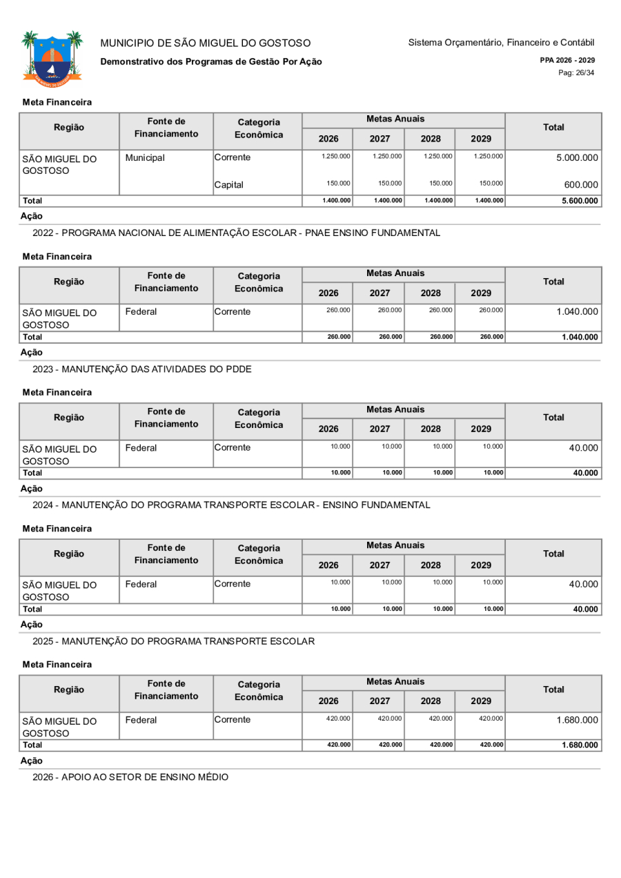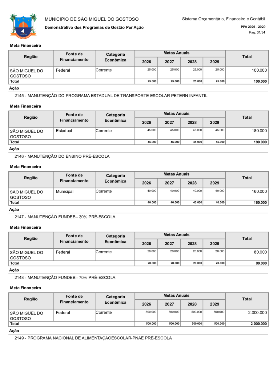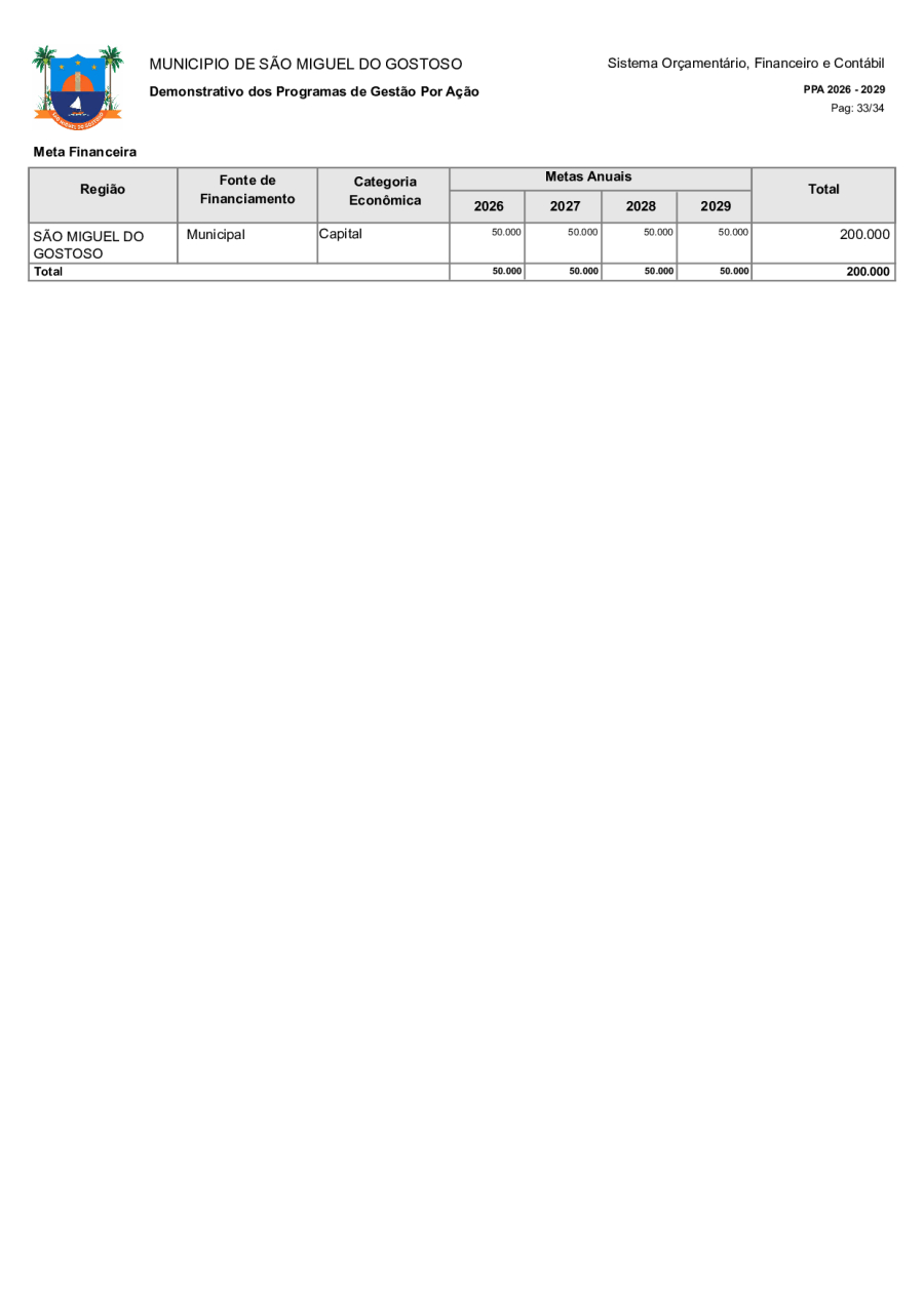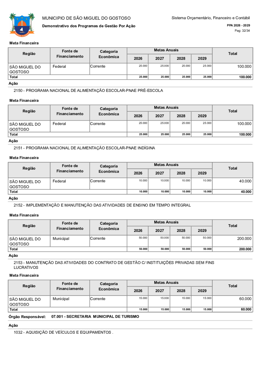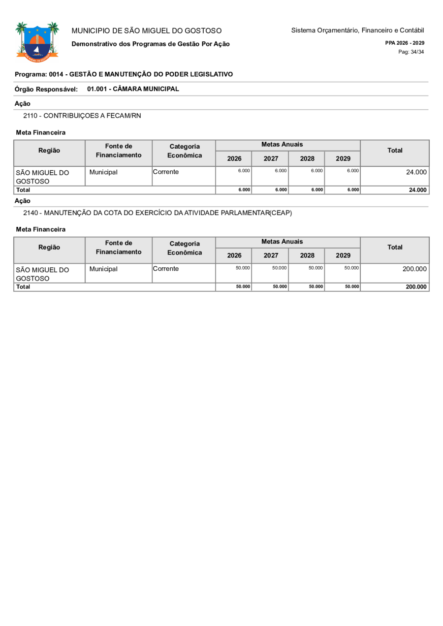 LEI MUNICIPAL Nº. 541/2025 - ANEXO III - PPA -Demonstrativo dos Programas Gestao - Acao