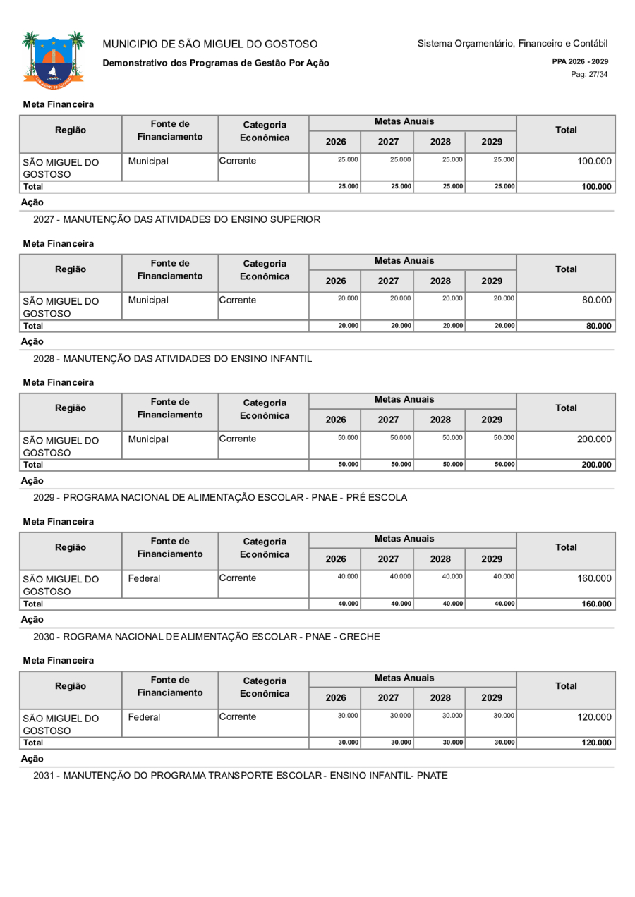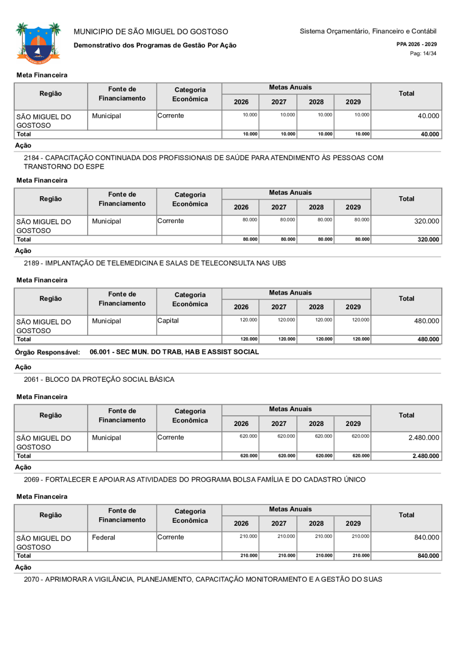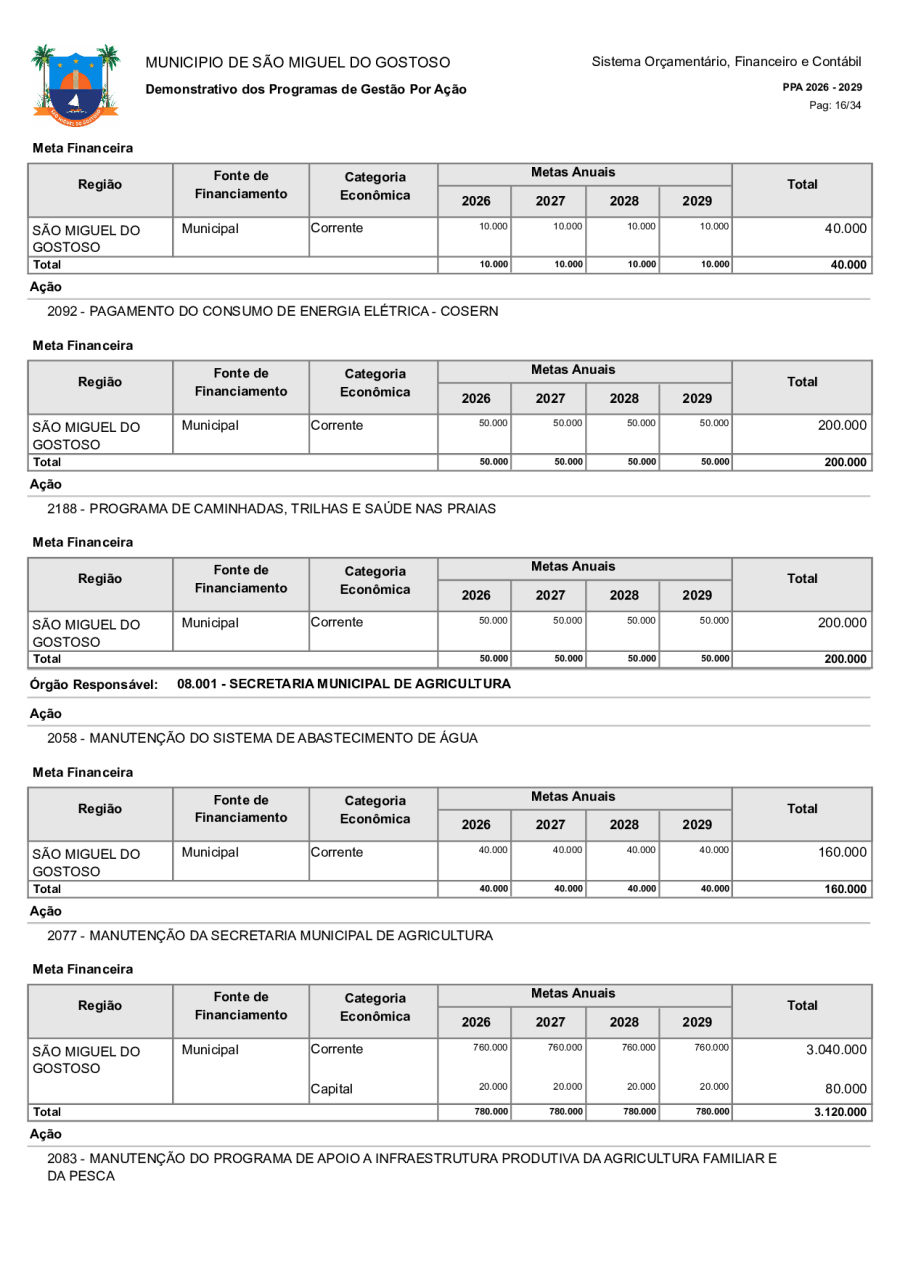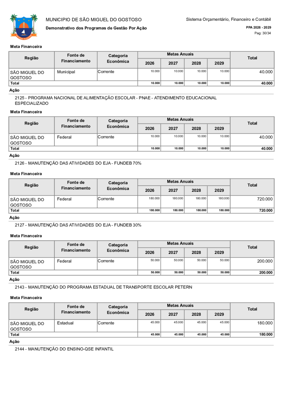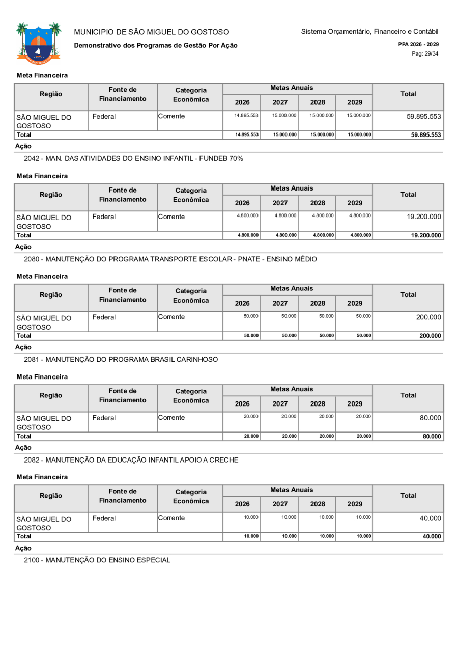 LEI MUNICIPAL Nº. 541/2025 - ANEXO III - PPA -Demonstrativo dos Programas Gestao - Acao