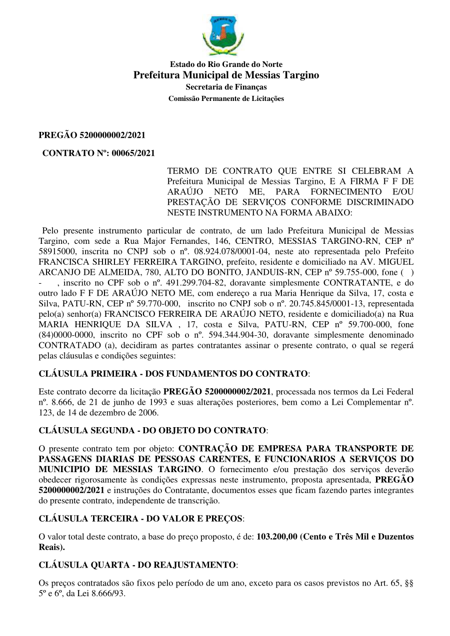 Conforme MP n° 2.200-2 de 24/08/2001, que institui a infraestrutura de chaves Públicas. Matéria Publicada no Diário Oficial do Município de Messias Targino/RN no dia - Edição 00277.