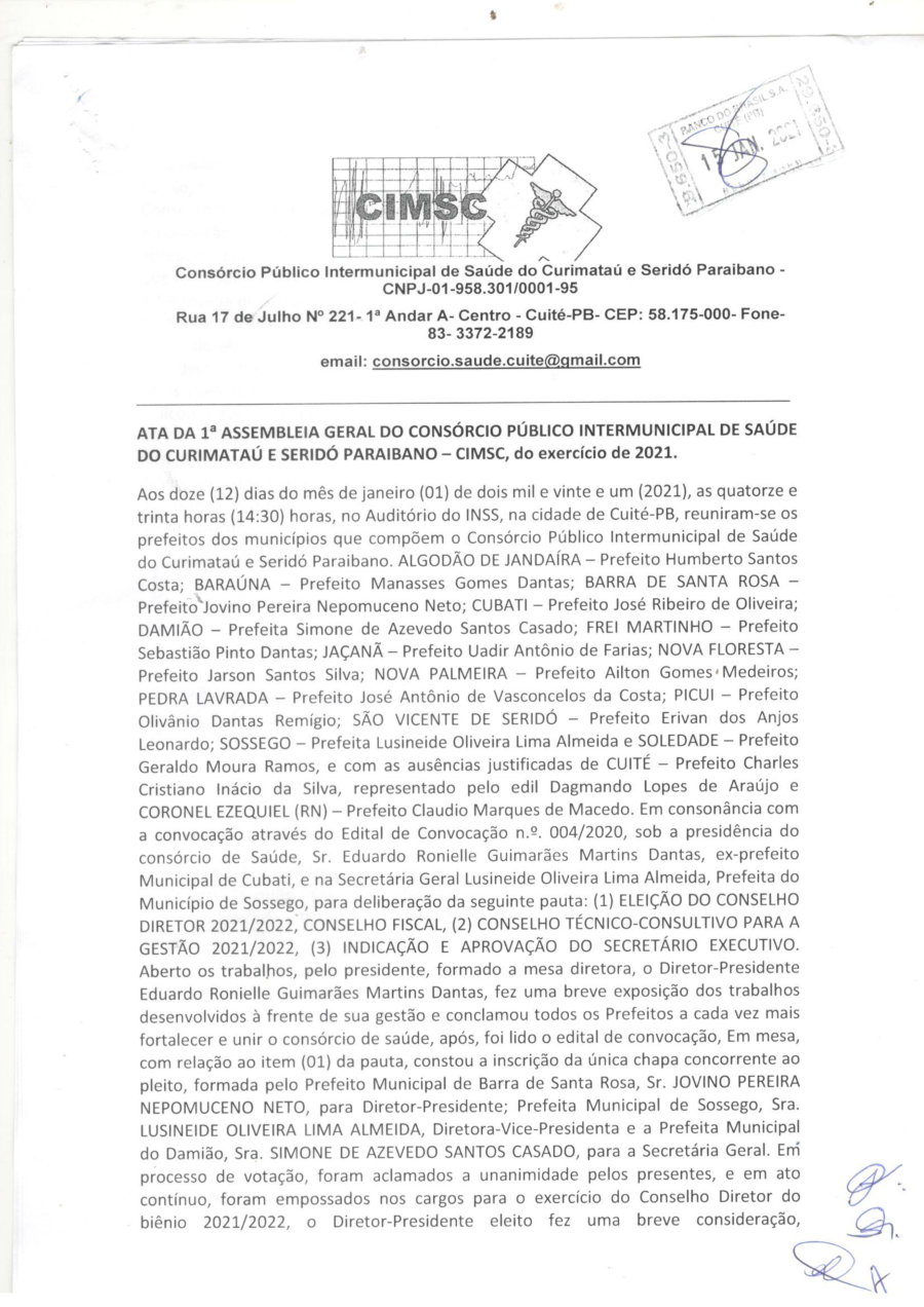ATA DA 1ª ASSEMBLÉIA GERAL - 12 DE JANEIRO DE 2021