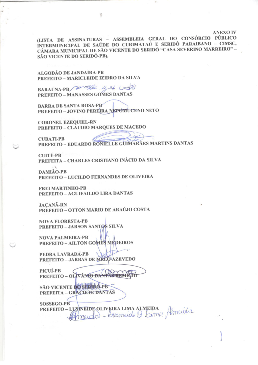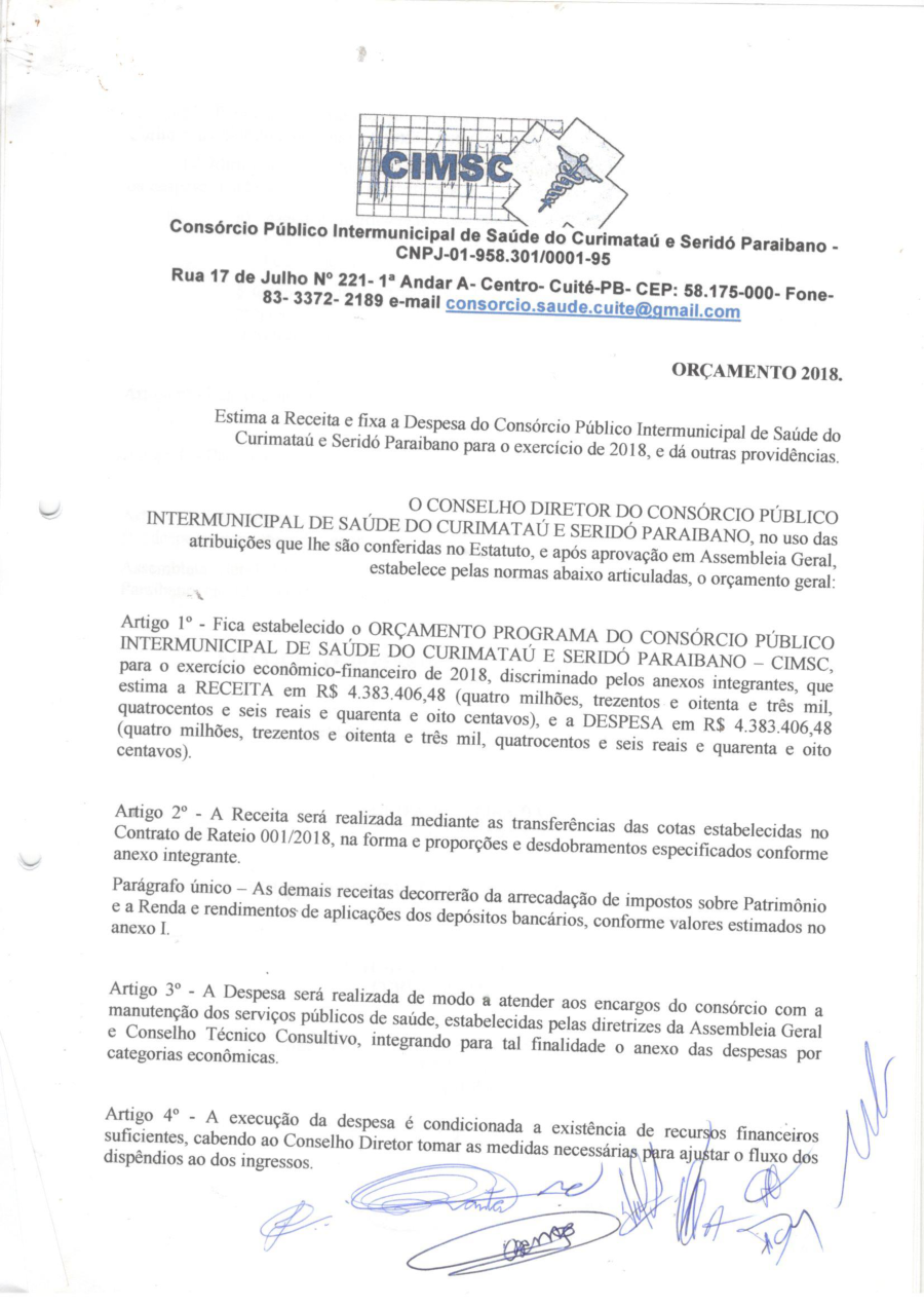 Conforme MP n° 2.200-2 de 24/08/2001, que institui a infraestrutura de chaves Públicas. Matéria Publicada no Diário Oficial do Consórcio Intermunicipal de Saúde do Curimataú e Seridó Paraibano/PB no dia - Edição .