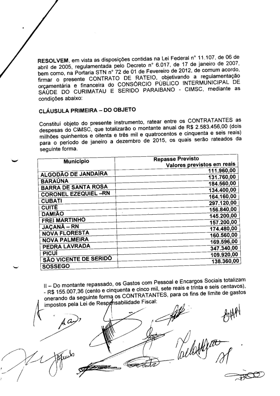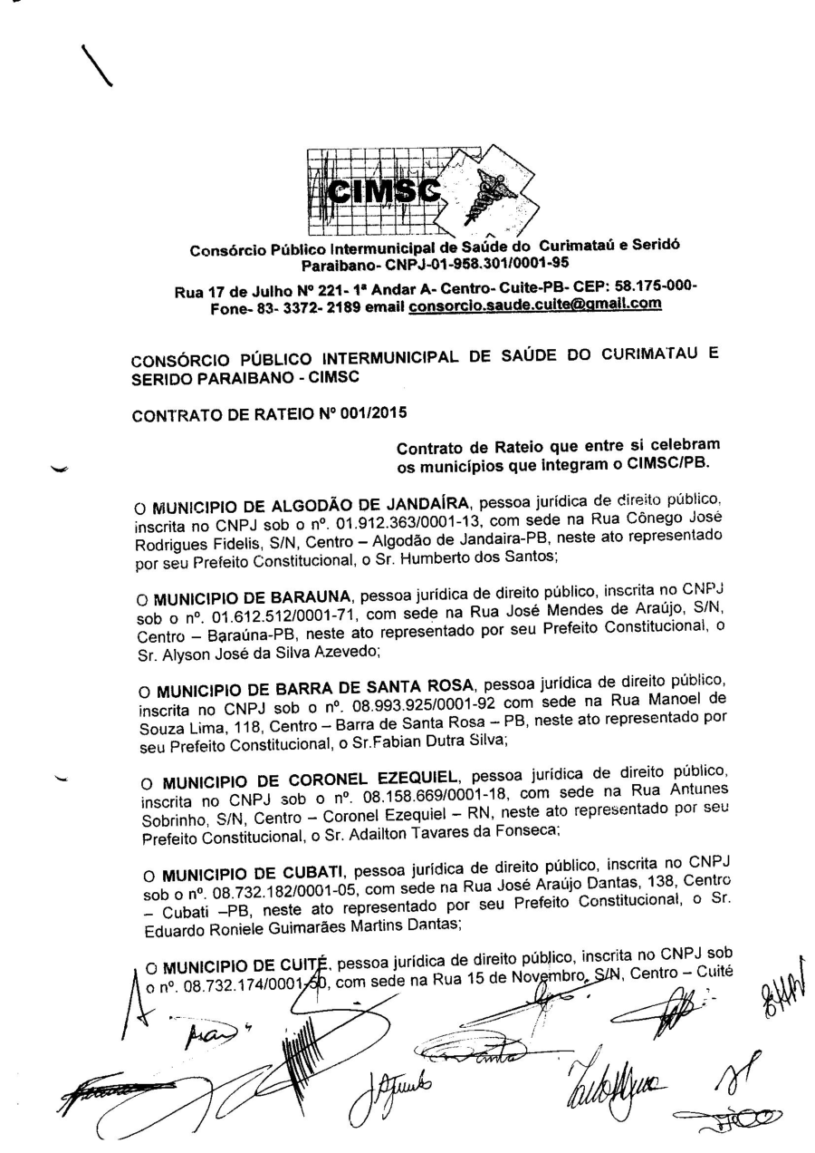CONTRATO DE RATEIO Nº 0001/2015 - 18 DE NOVEMBRO DE 2014