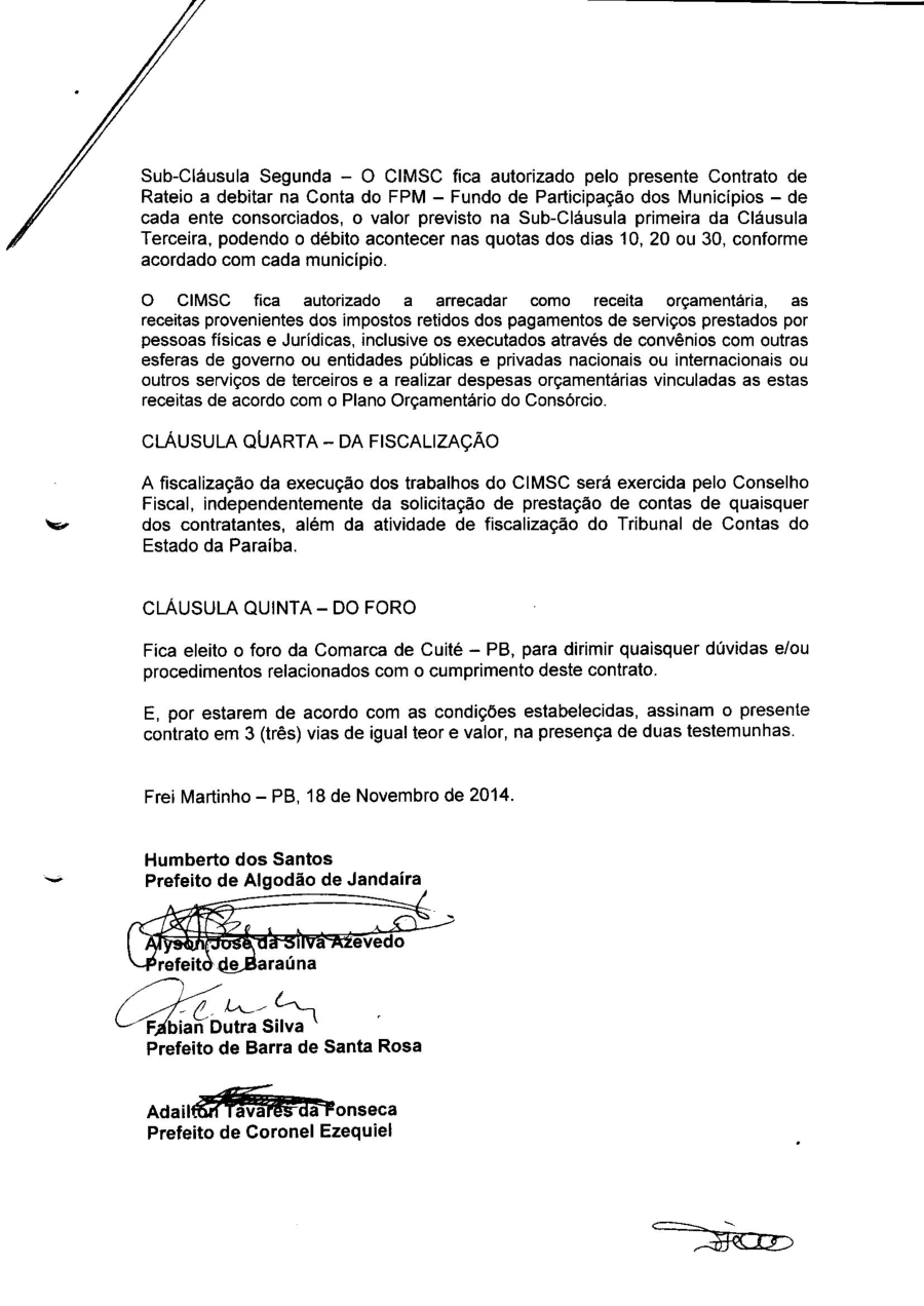 Conforme MP n° 2.200-2 de 24/08/2001, que institui a infraestrutura de chaves Públicas. Matéria Publicada no Diário Oficial do Consórcio Intermunicipal de Saúde do Curimataú e Seridó Paraibano/PB no dia - Edição .