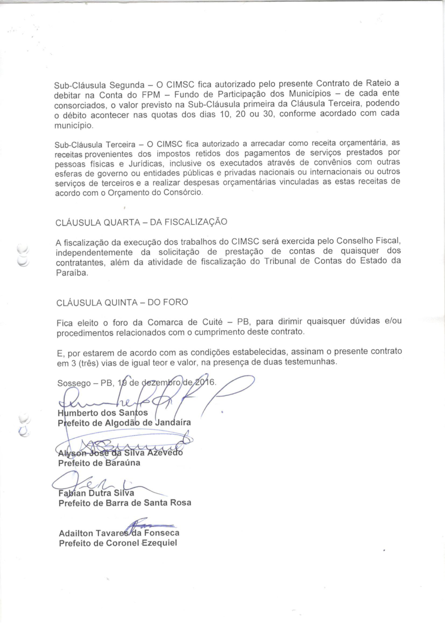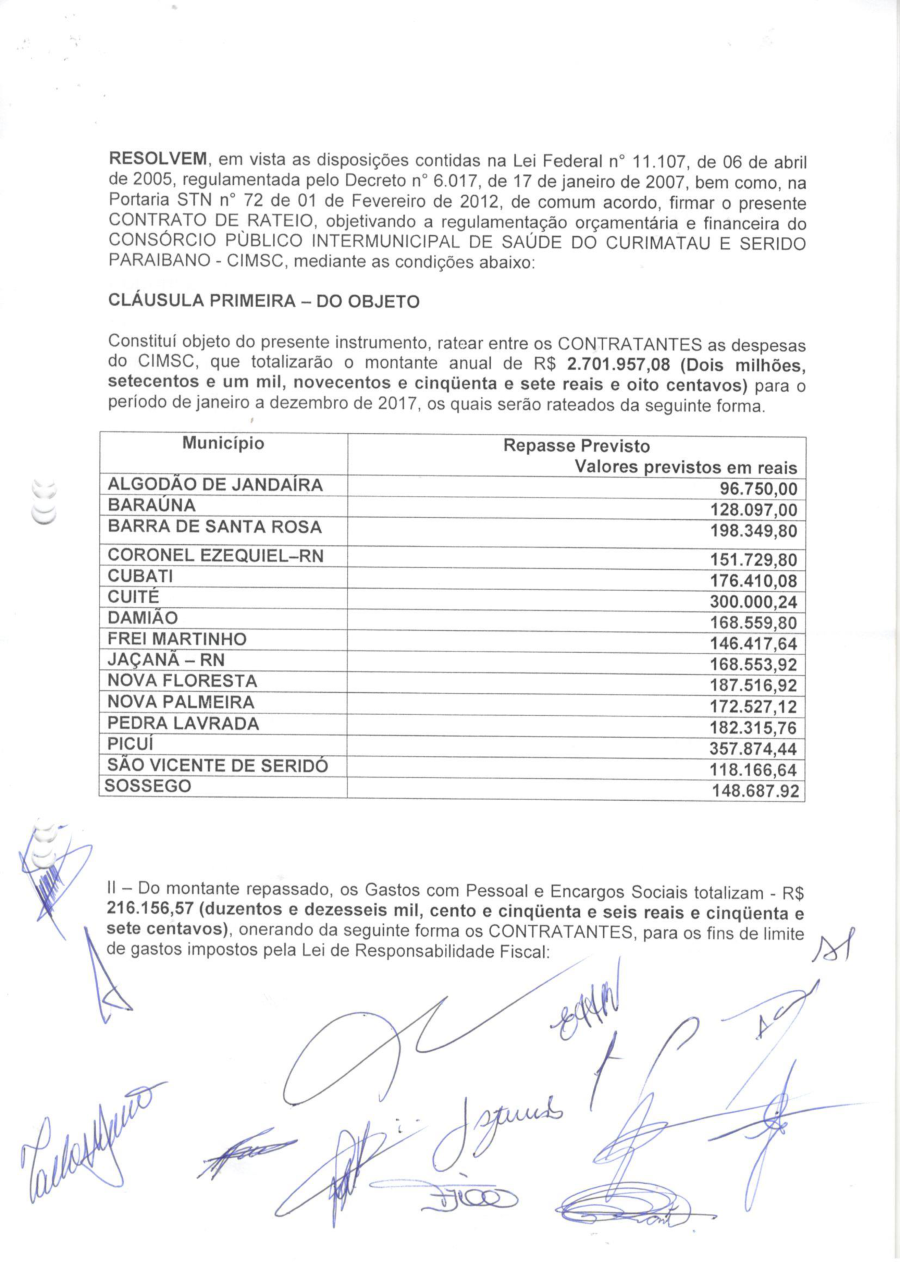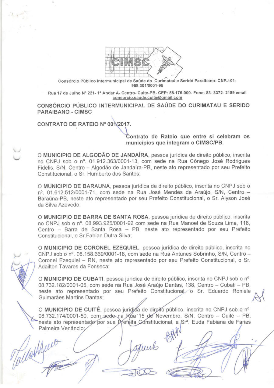 CONTRATO DE RATEIO Nº 0001/2017 - 19 DE DEZEMBRO DE 2016