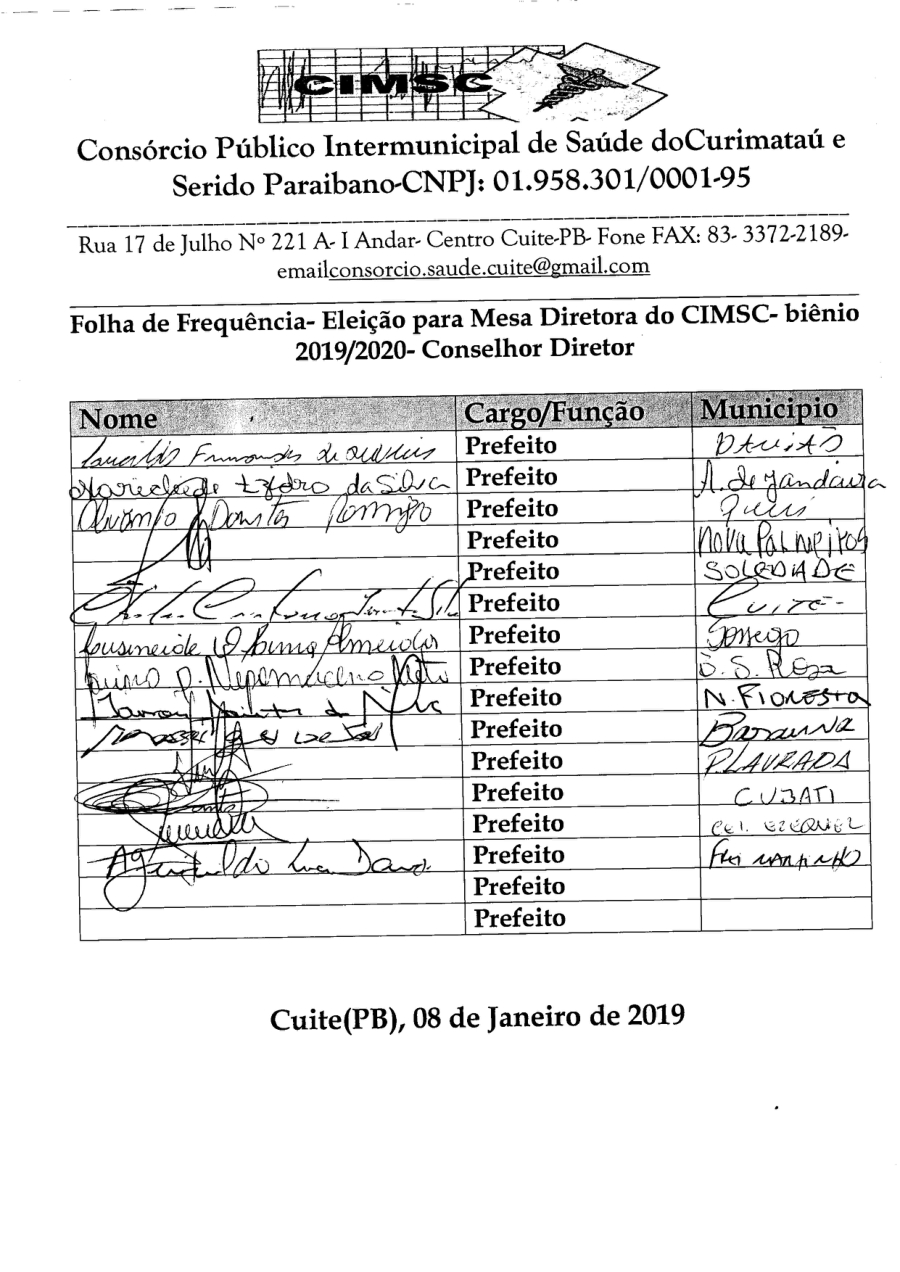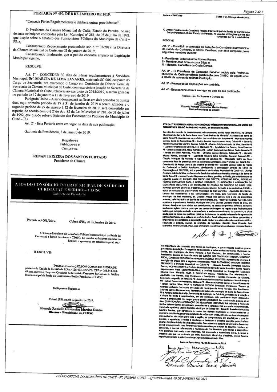 Conforme MP n° 2.200-2 de 24/08/2001, que institui a infraestrutura de chaves Públicas. Matéria Publicada no Diário Oficial do Consórcio Intermunicipal de Saúde do Curimataú e Seridó Paraibano/PB no dia - Edição .