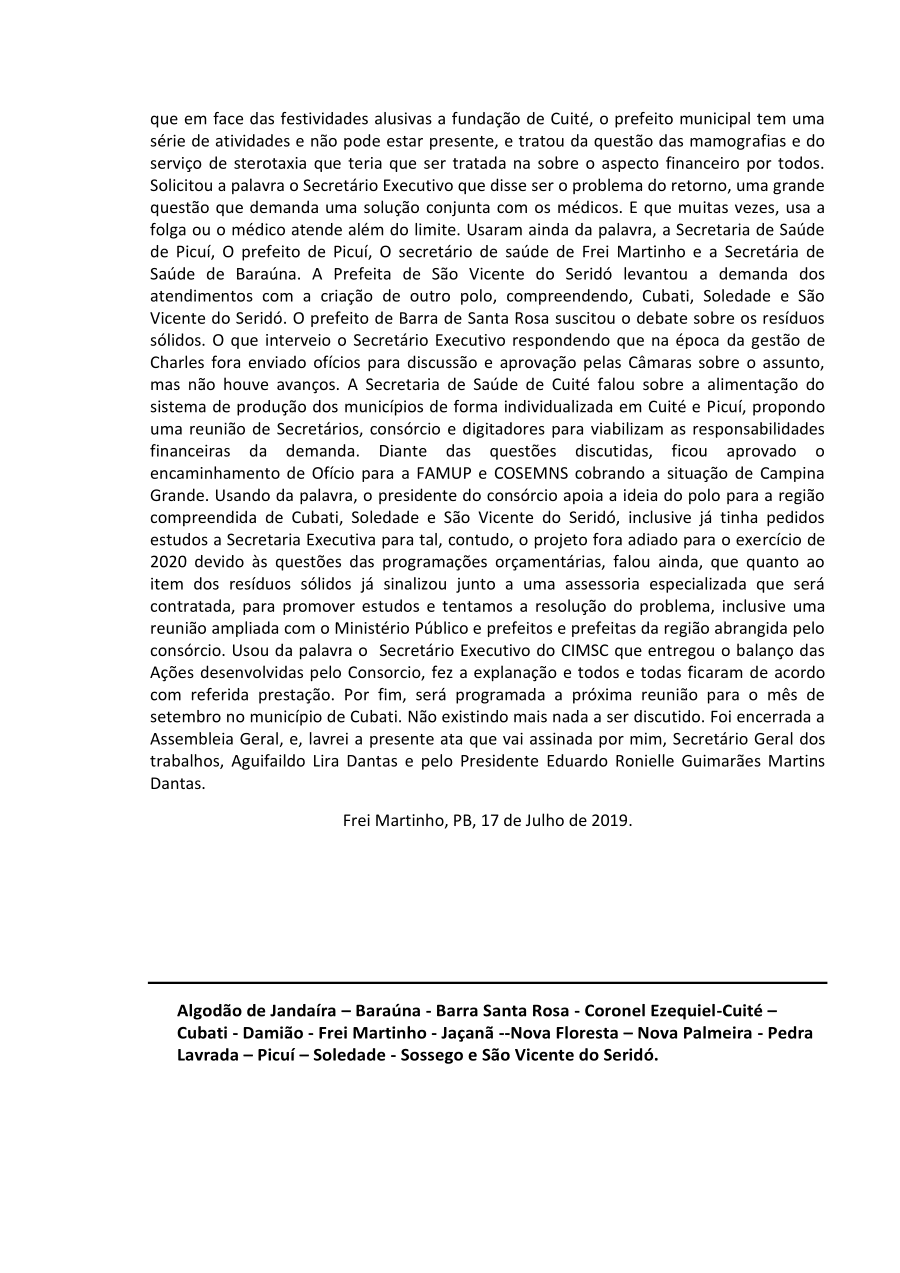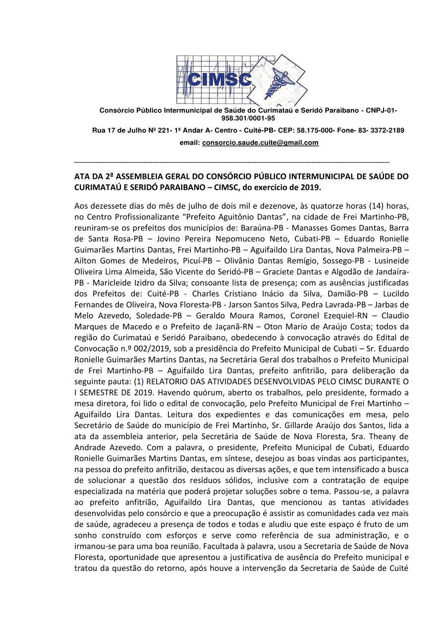 ATA DA 2º ASSEMBLÉIA GERAL - 17 DE JULHO DE 2019