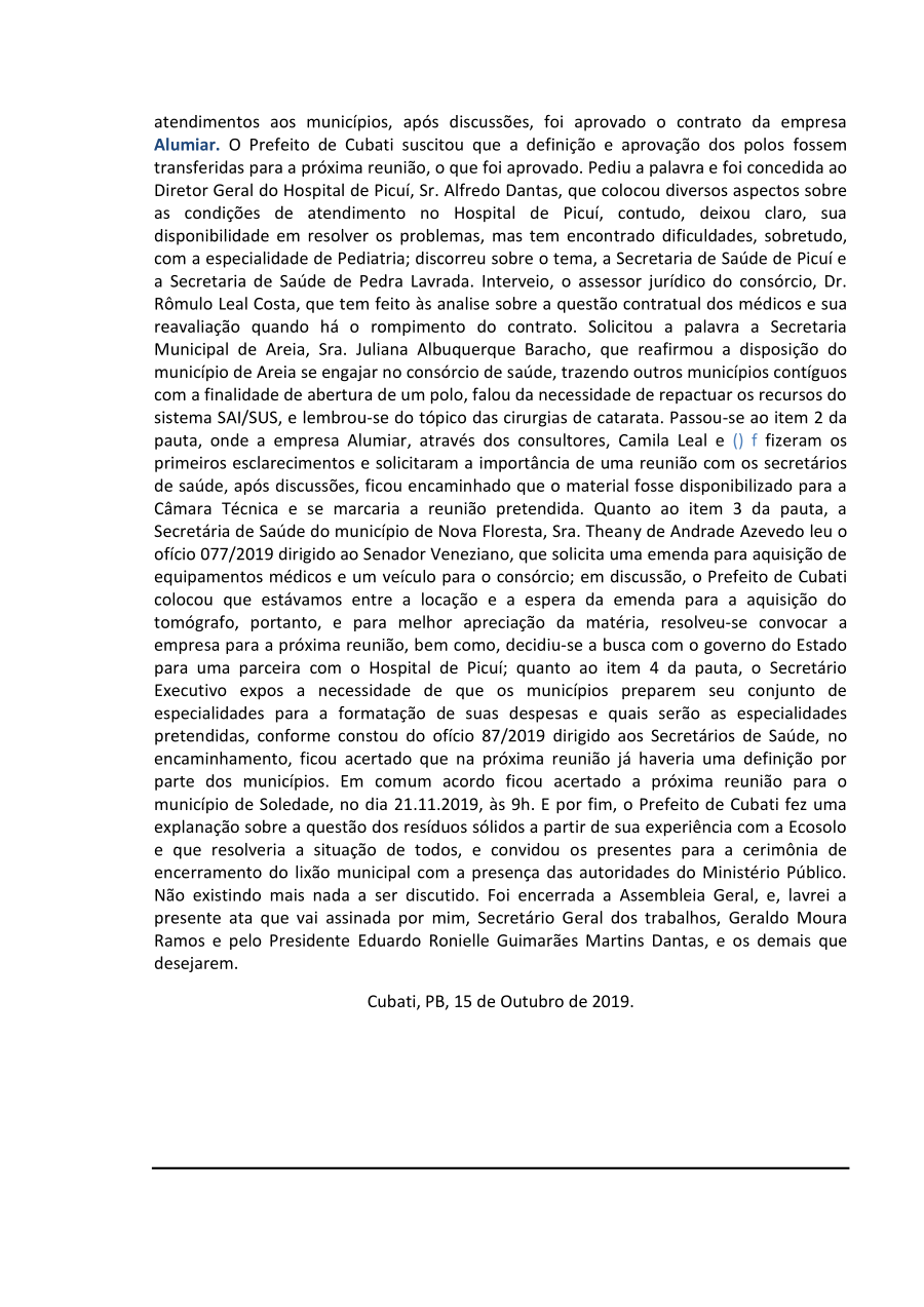 Conforme MP n° 2.200-2 de 24/08/2001, que institui a infraestrutura de chaves Públicas. Matéria Publicada no Diário Oficial do Consórcio Intermunicipal de Saúde do Curimataú e Seridó Paraibano/PB no dia - Edição .