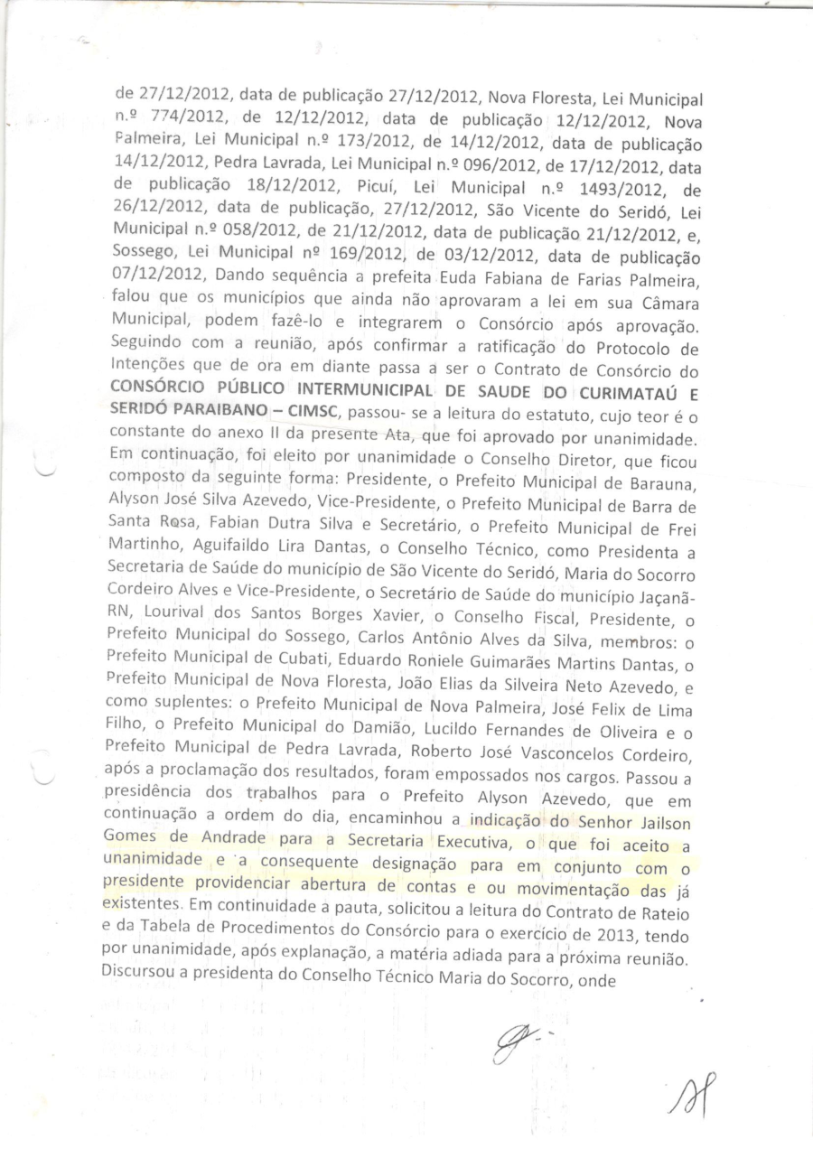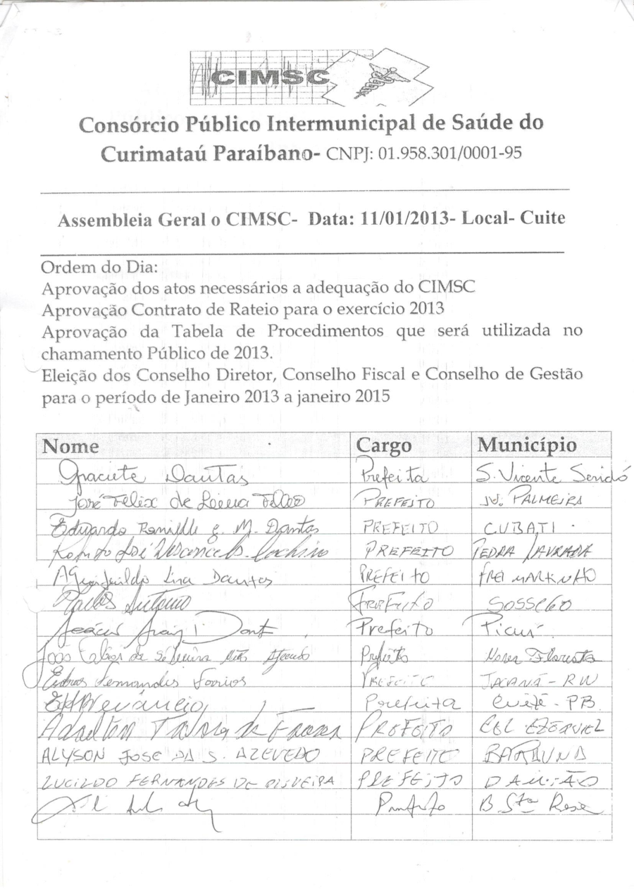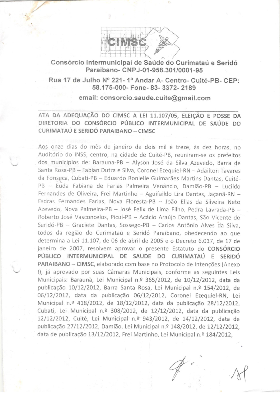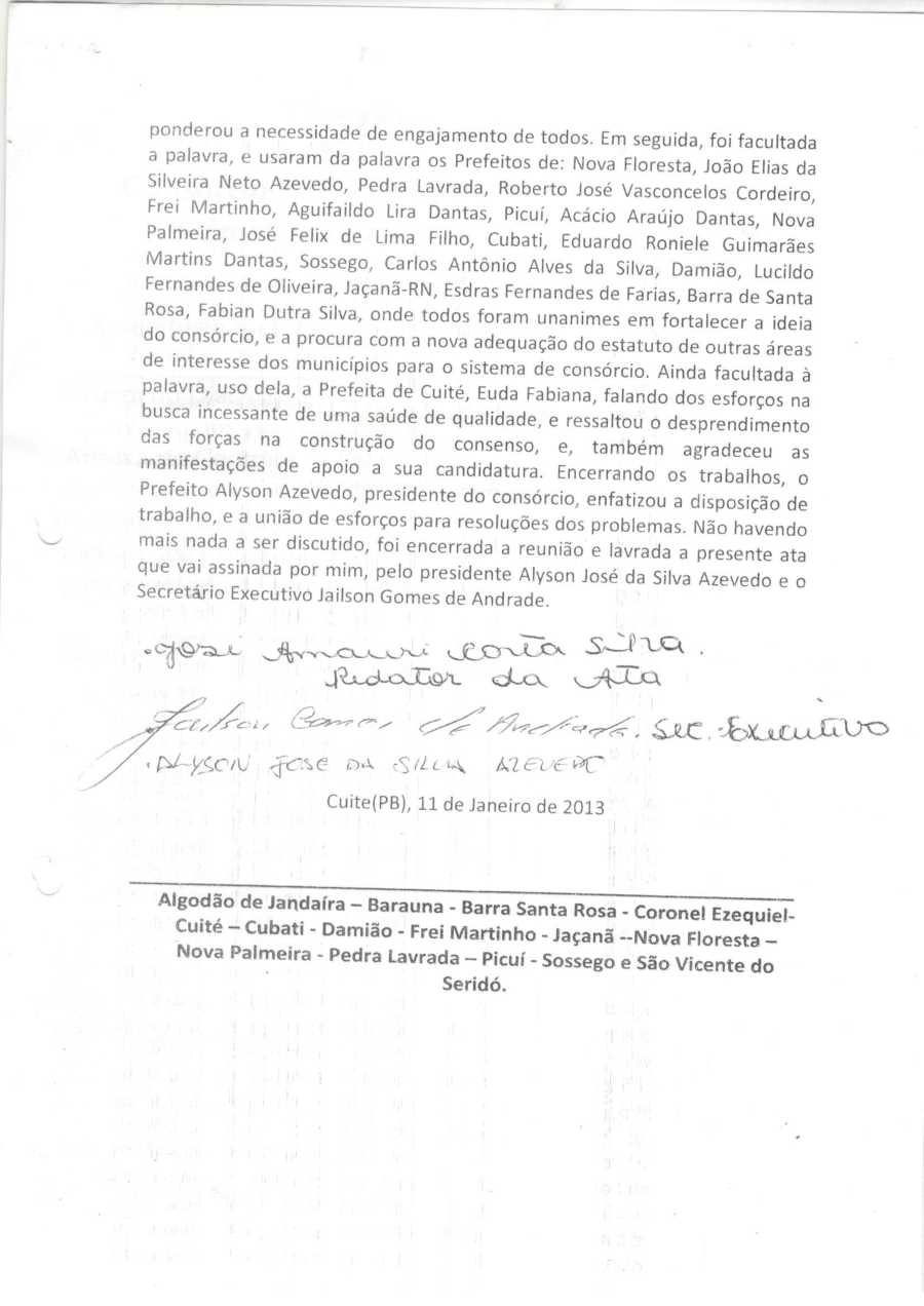 ATA DE READEQUAÇÃO DOS CONSÓRCIOS - 11 DE JANEIRO DE 2013