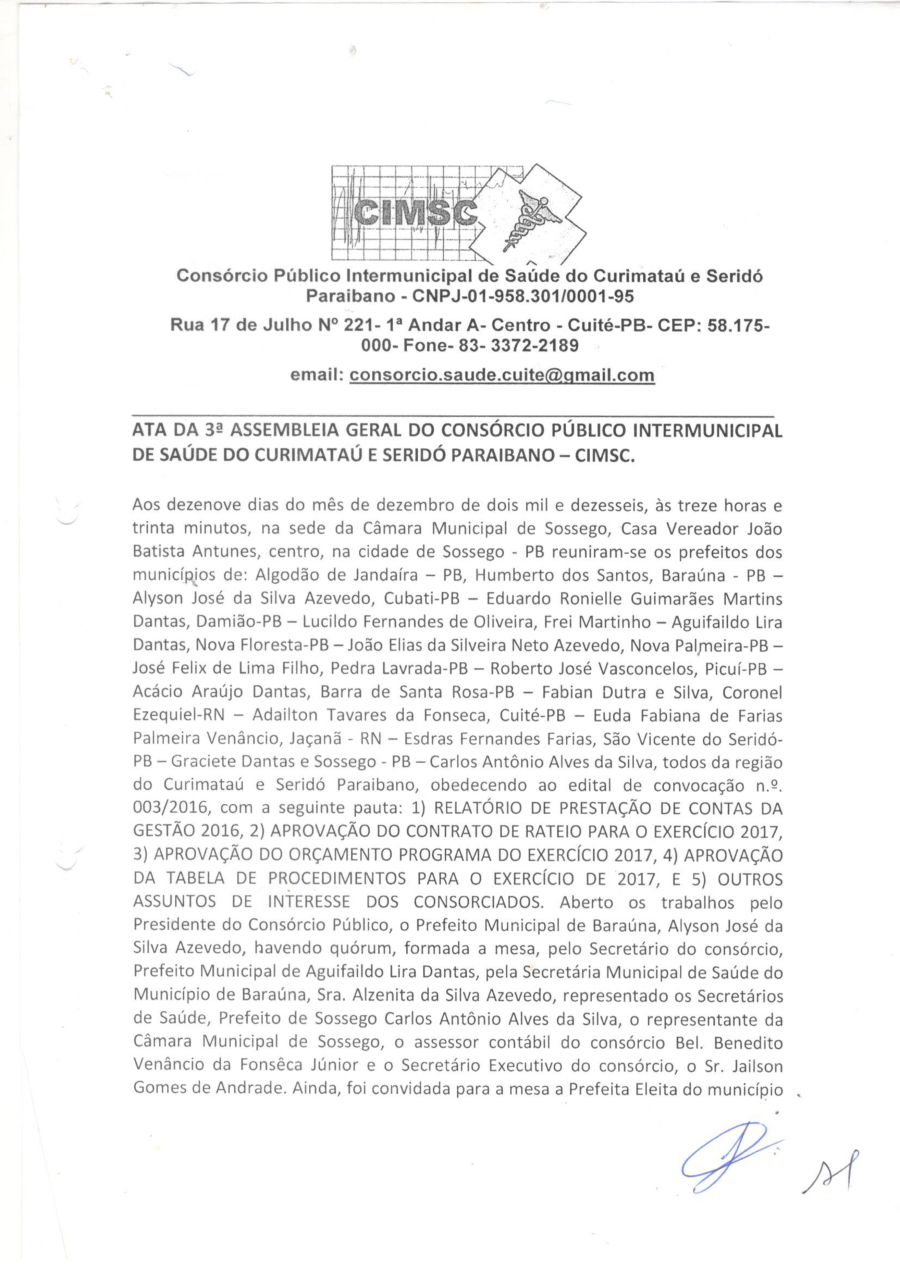 ATA DA 3ª ASSEMBLÉIA GERAL - 19 DE DEZEMBRO DE 2016