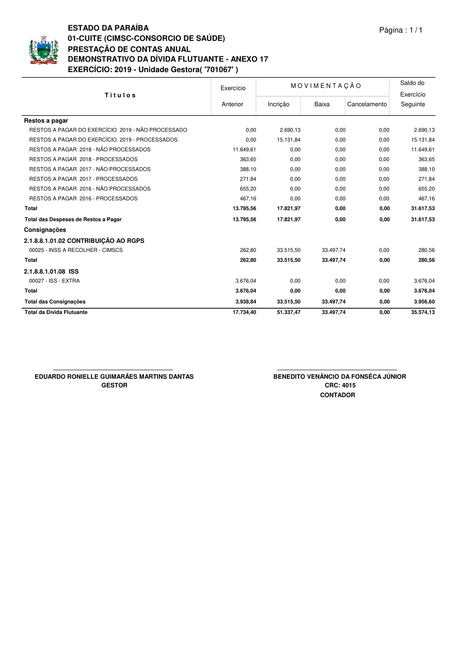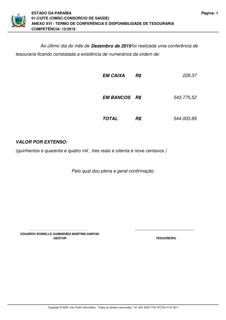 Conforme MP n° 2.200-2 de 24/08/2001, que institui a infraestrutura de chaves Públicas. Matéria Publicada no Diário Oficial do Consórcio Intermunicipal de Saúde do Curimataú e Seridó Paraibano/PB no dia - Edição .