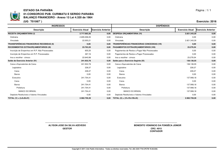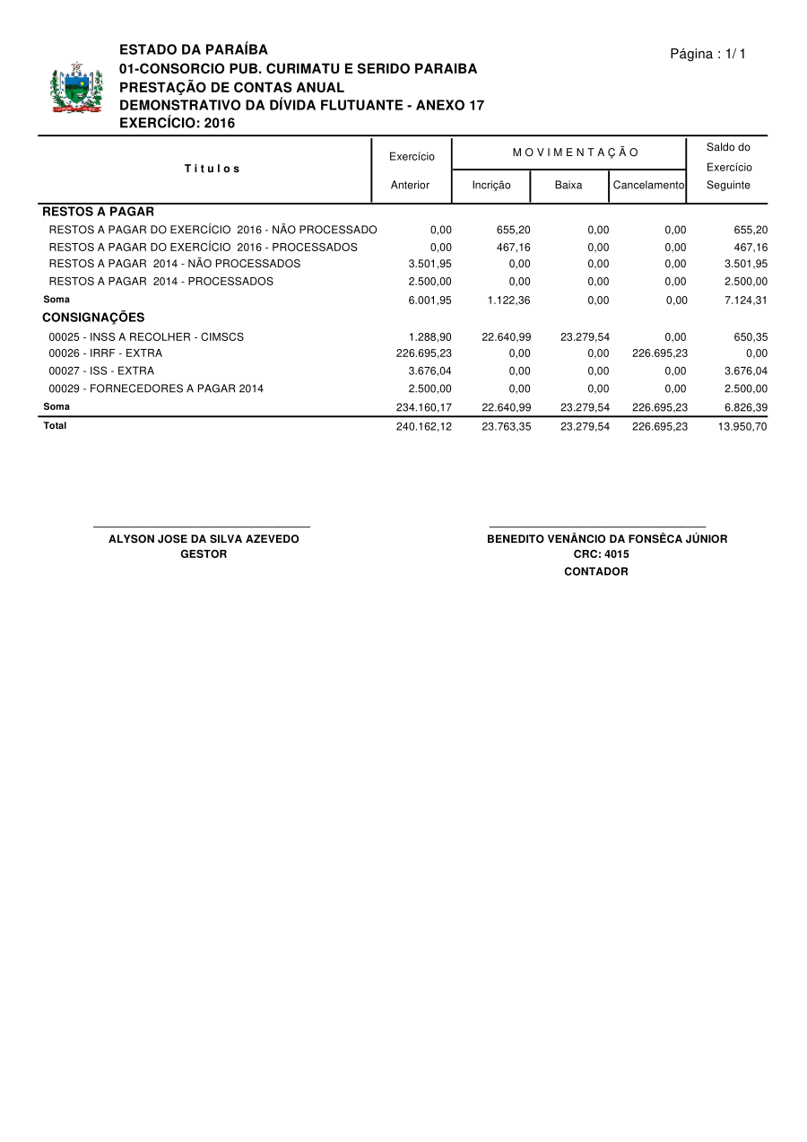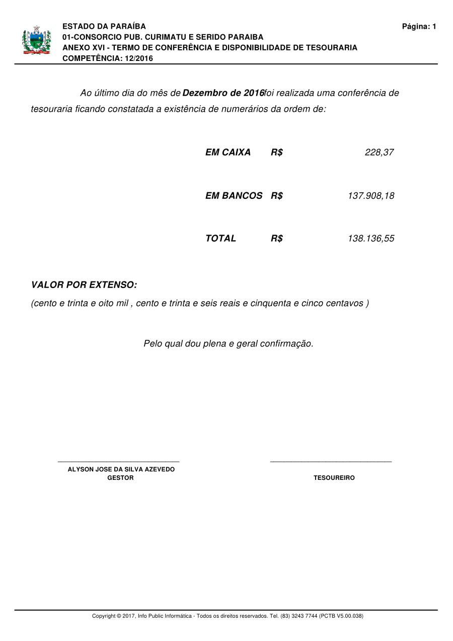 Conforme MP n° 2.200-2 de 24/08/2001, que institui a infraestrutura de chaves Públicas. Matéria Publicada no Diário Oficial do Consórcio Intermunicipal de Saúde do Curimataú e Seridó Paraibano/PB no dia - Edição .