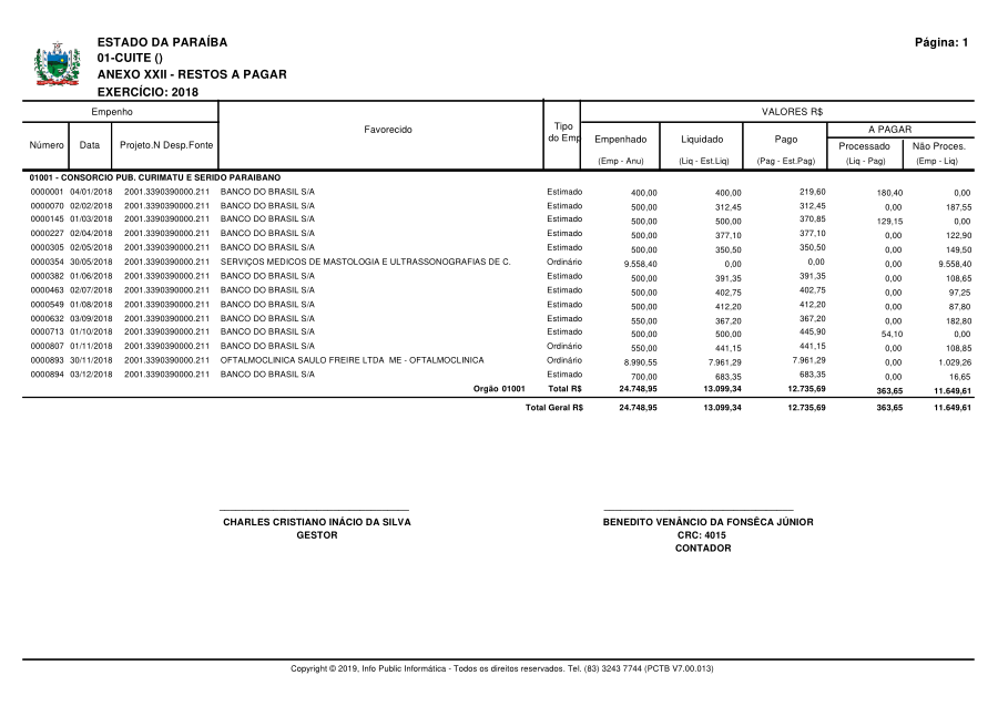 Conforme MP n° 2.200-2 de 24/08/2001, que institui a infraestrutura de chaves Públicas. Matéria Publicada no Diário Oficial do Consórcio Intermunicipal de Saúde do Curimataú e Seridó Paraibano/PB no dia - Edição .
