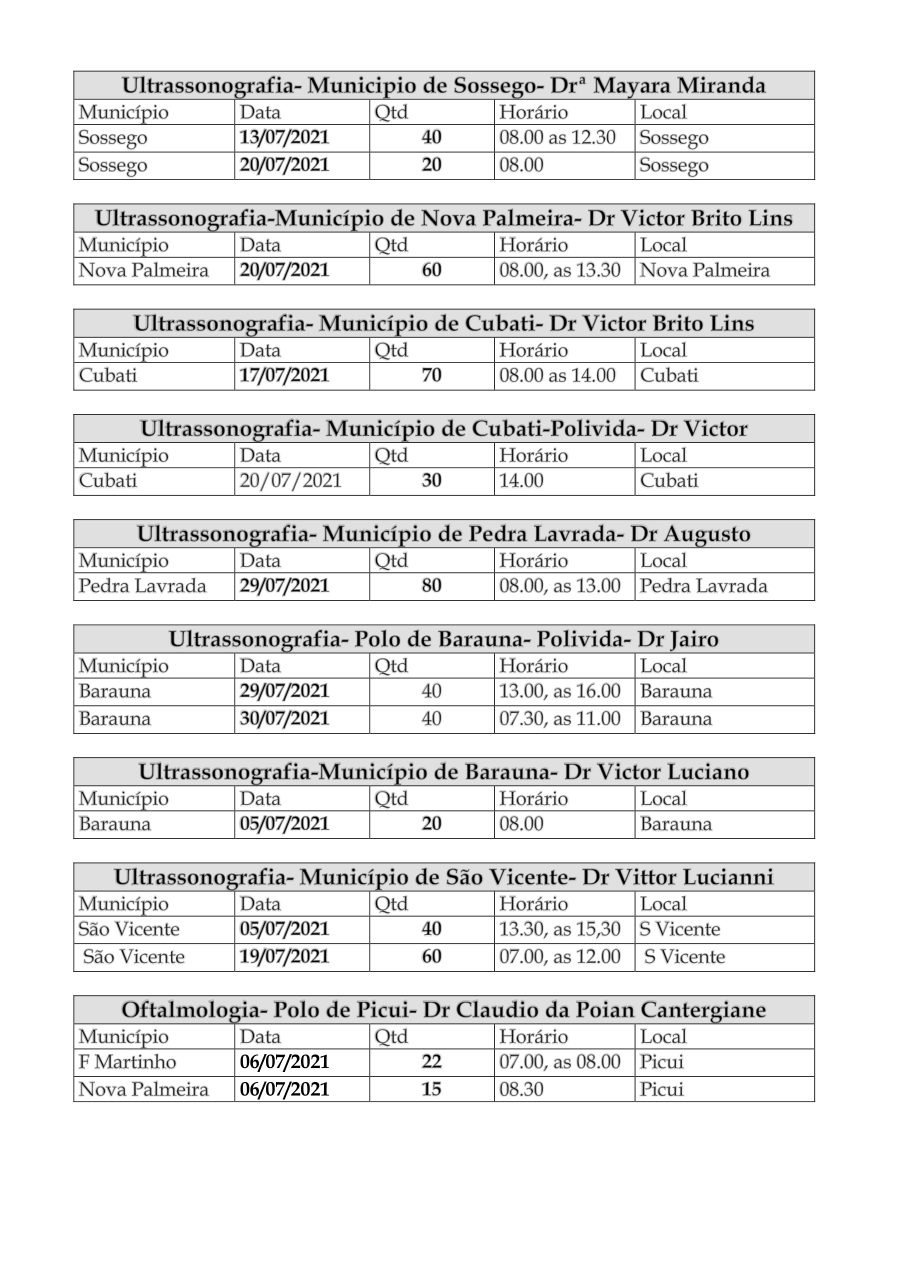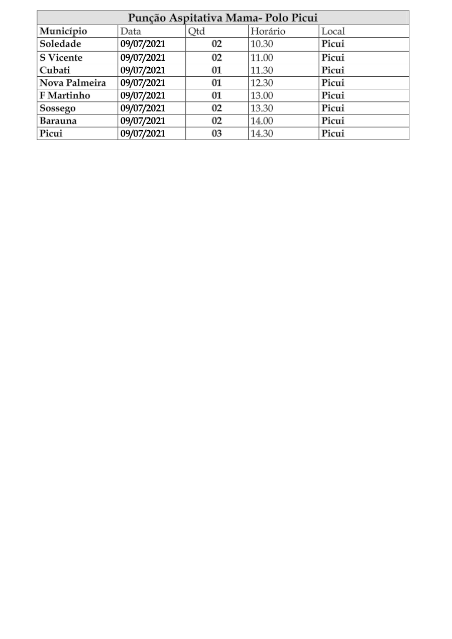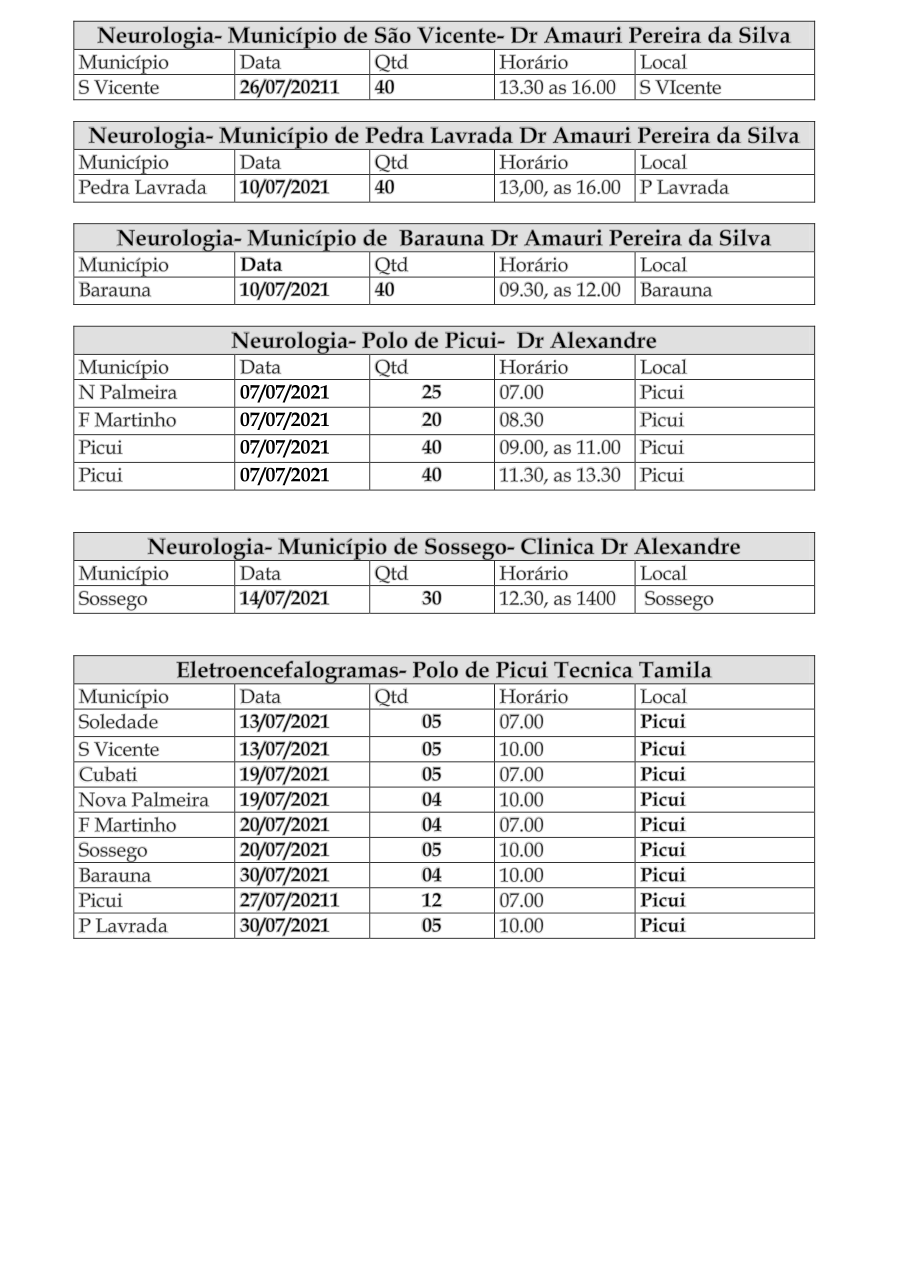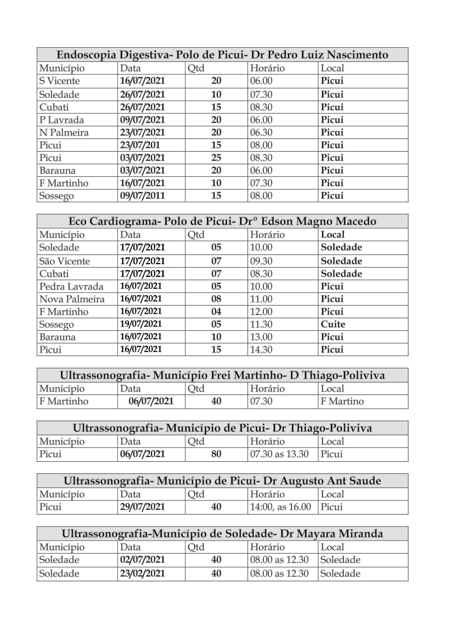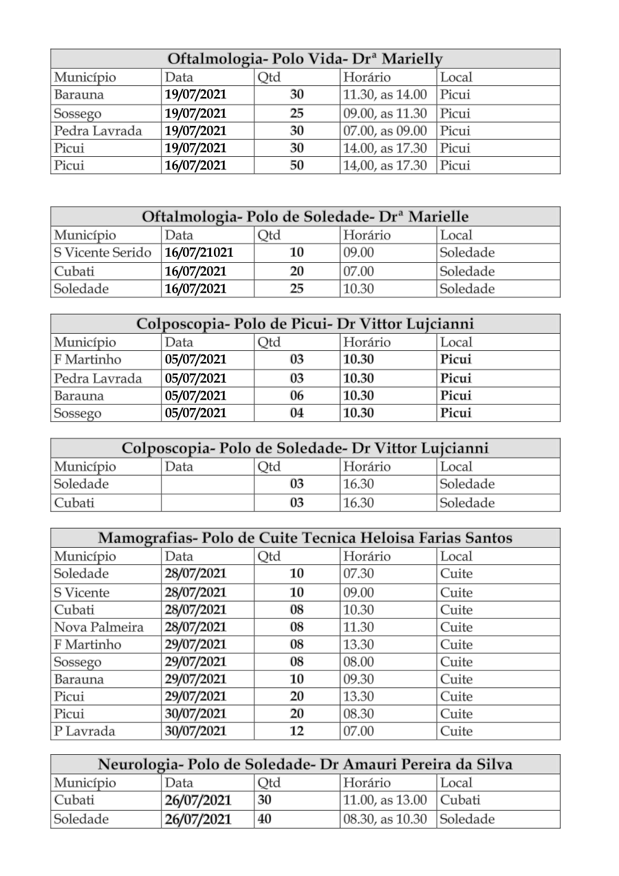 CALENDÁRIO DE ATENDIMENTO DO MÊS DE JULHO DE 2021 - POLO DE PICUÍ