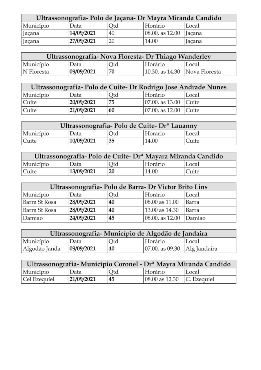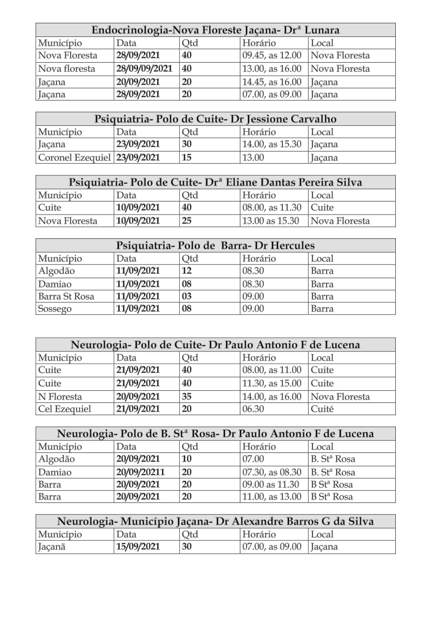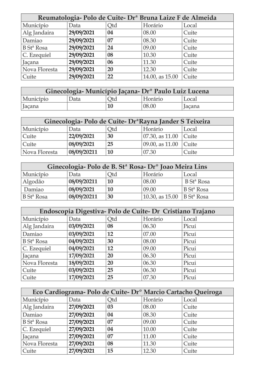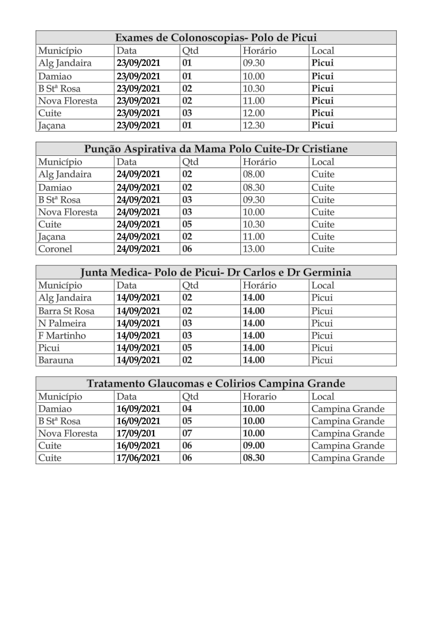 CALENDARIO DE ATENDIMENTO MÊS DE SETEMBRO DE 2021 - POLO CUITÉ