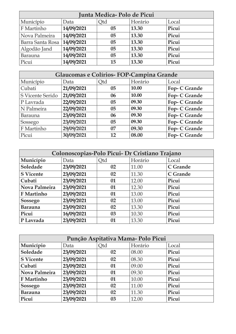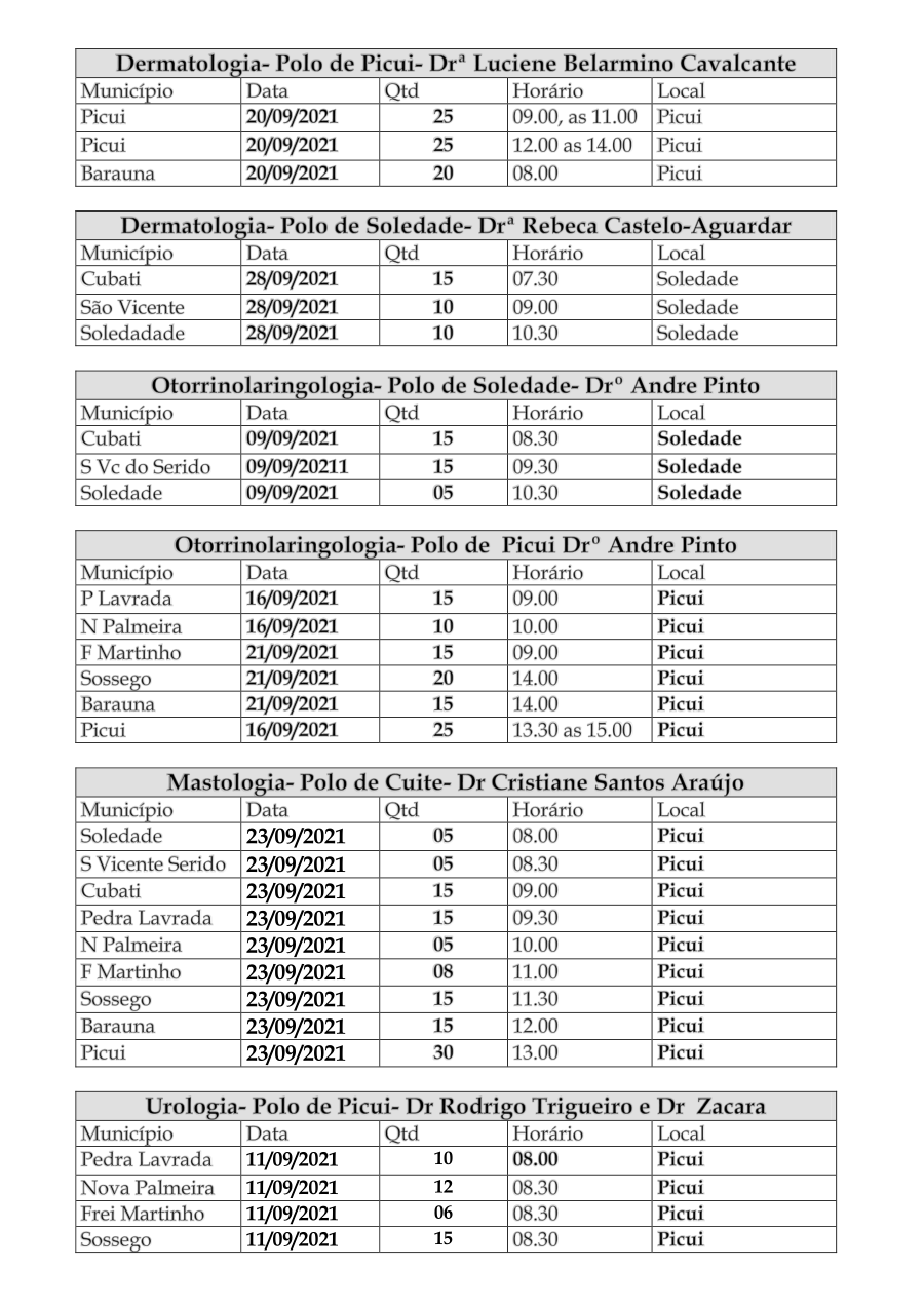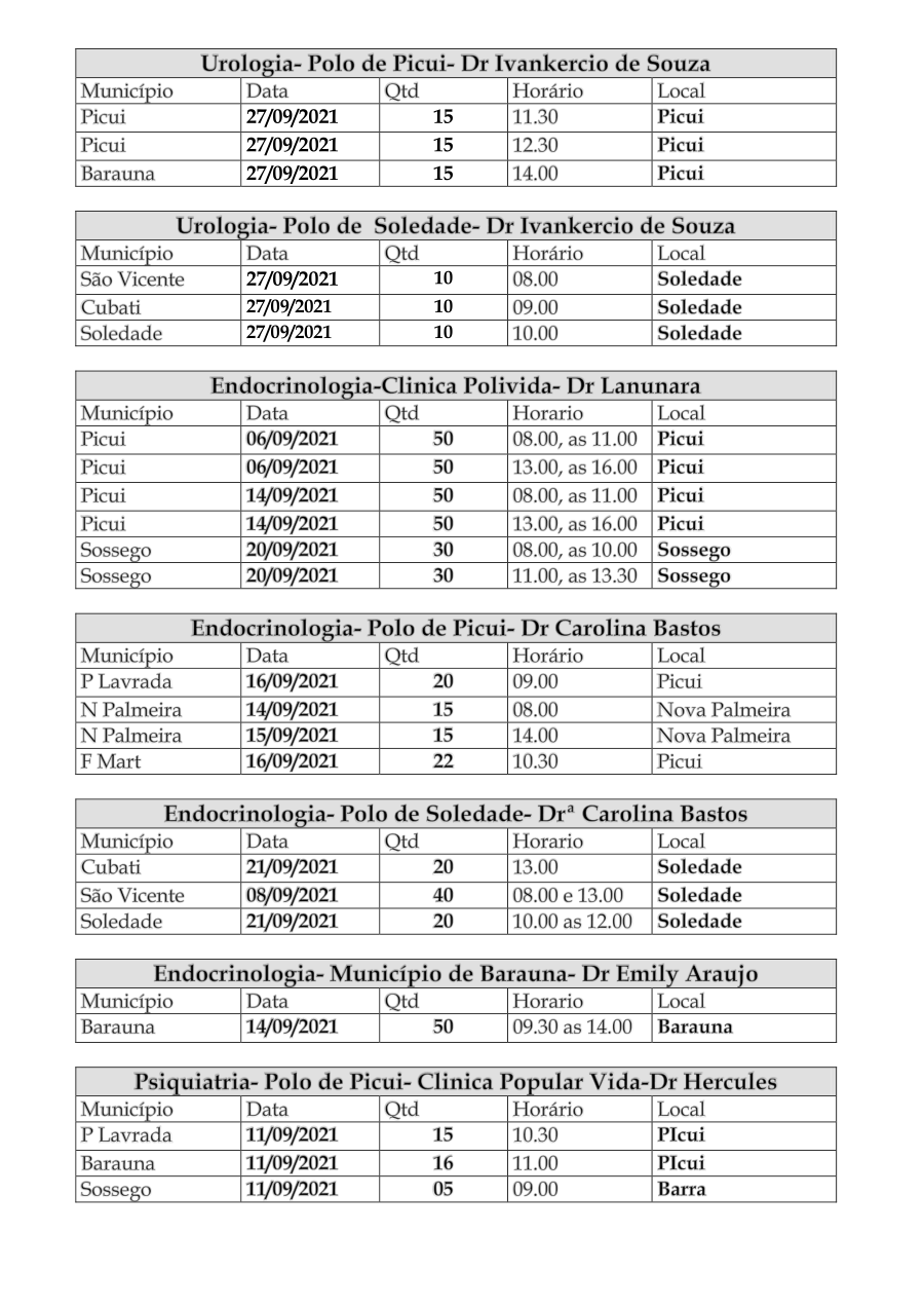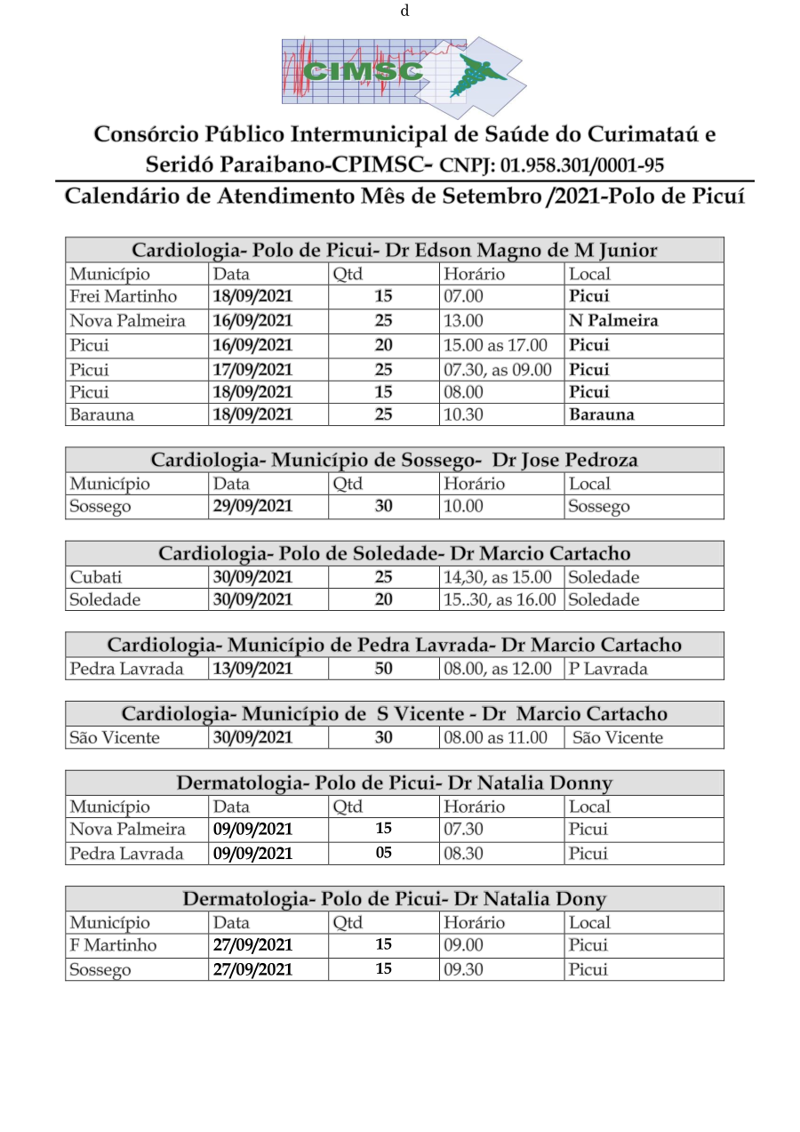 CALENDARIO DE ATENDIMENTO MÊS DE SETEMBRO DE 2021 - POLO PICUÍ