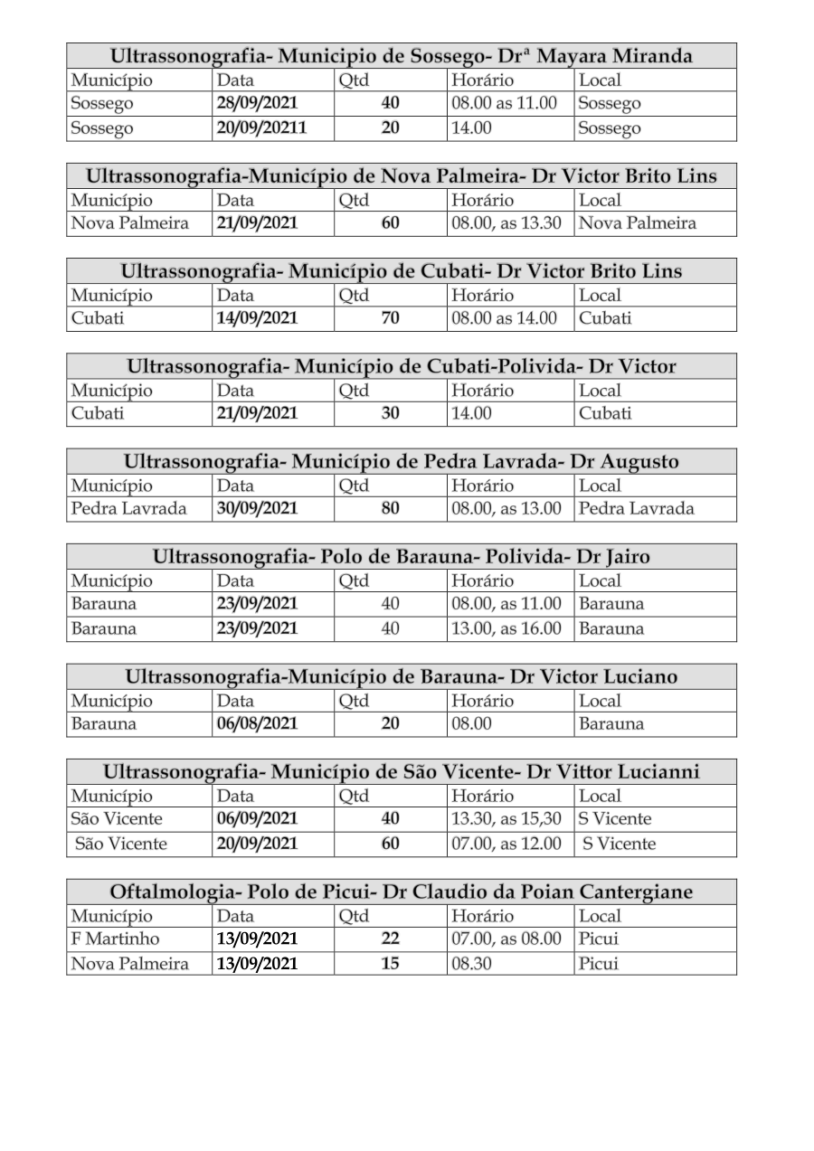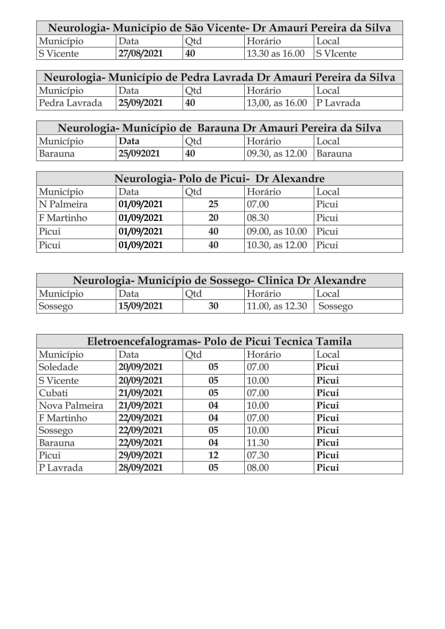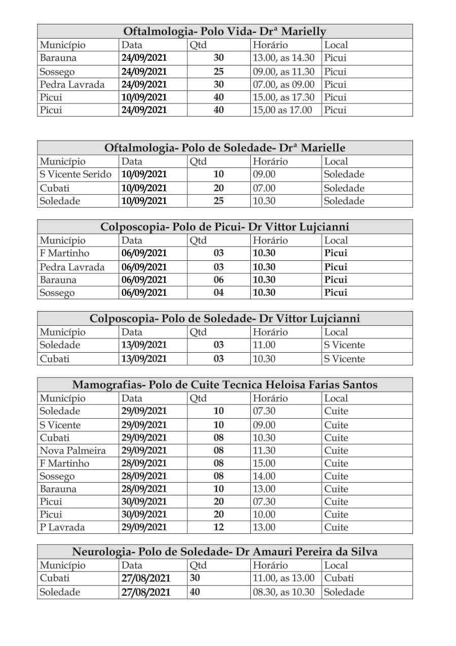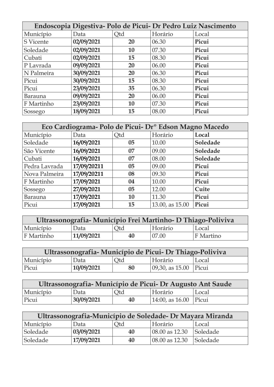 CALENDARIO DE ATENDIMENTO MÊS DE SETEMBRO DE 2021 - POLO PICUÍ