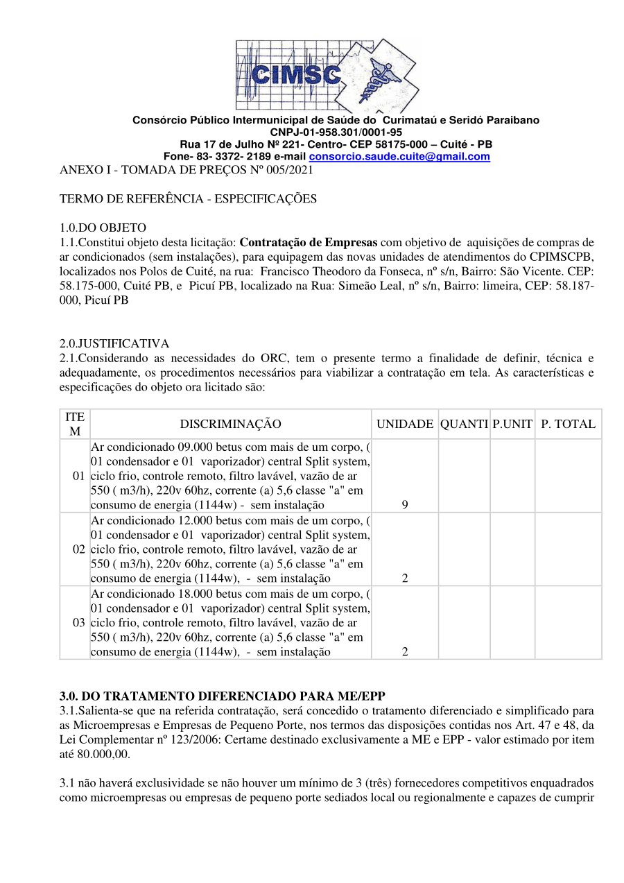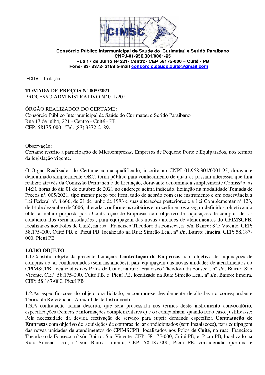 EDITAL DE LICITAÇÃO - TOMADA DE PREÇOS NO 005/2021 - PROCESSO ADMINISTRATIVO NO 011/2021