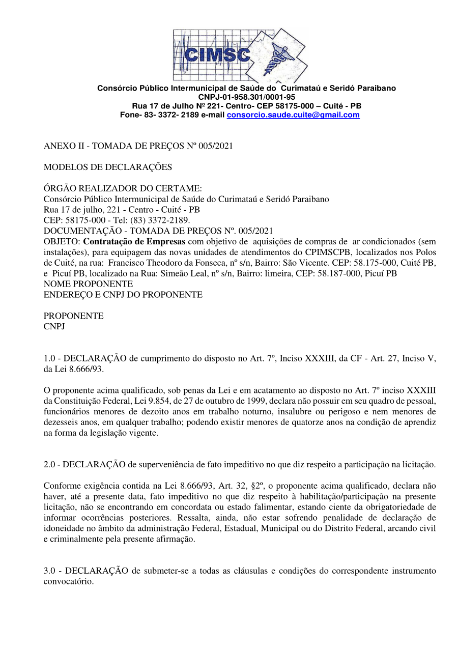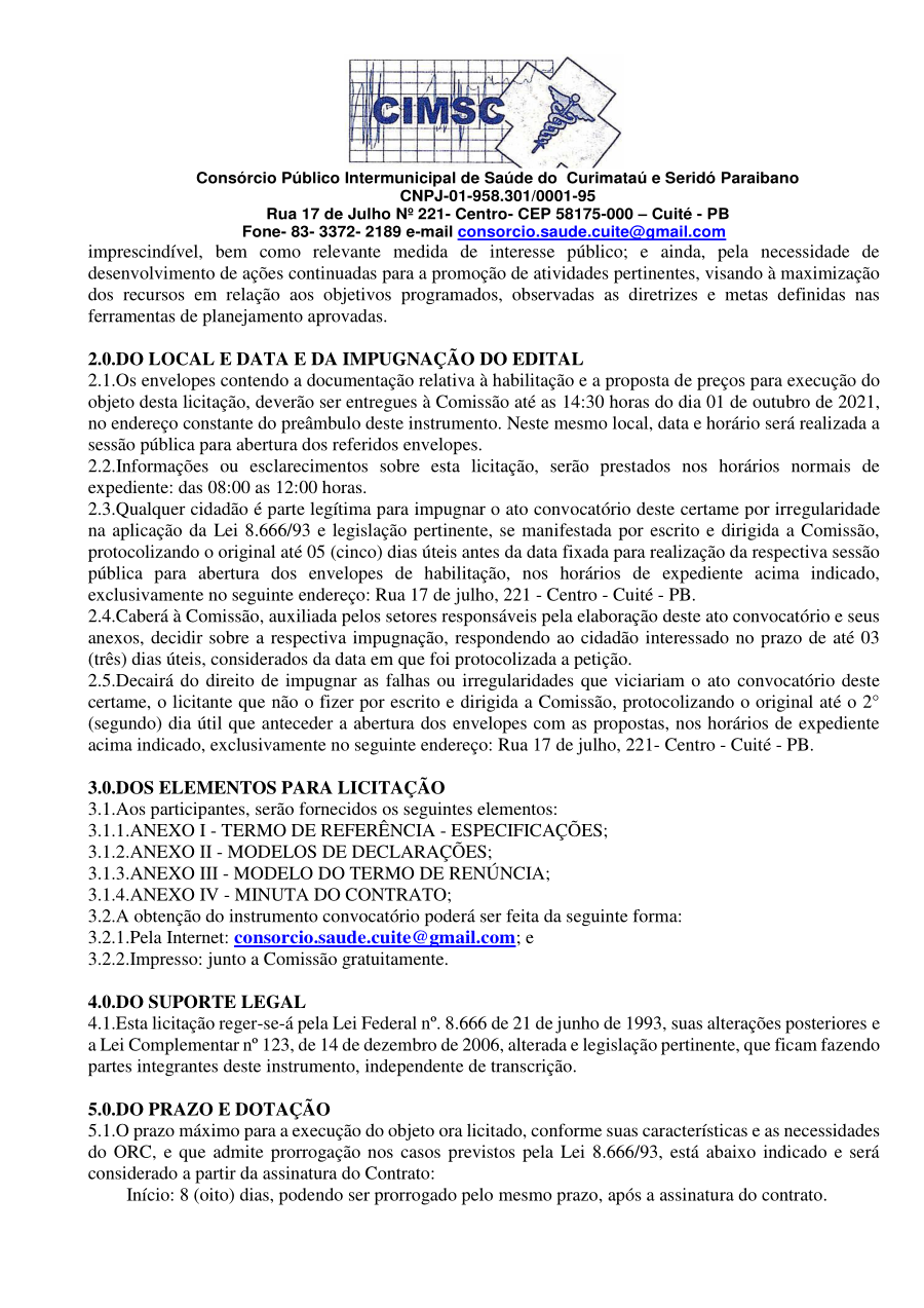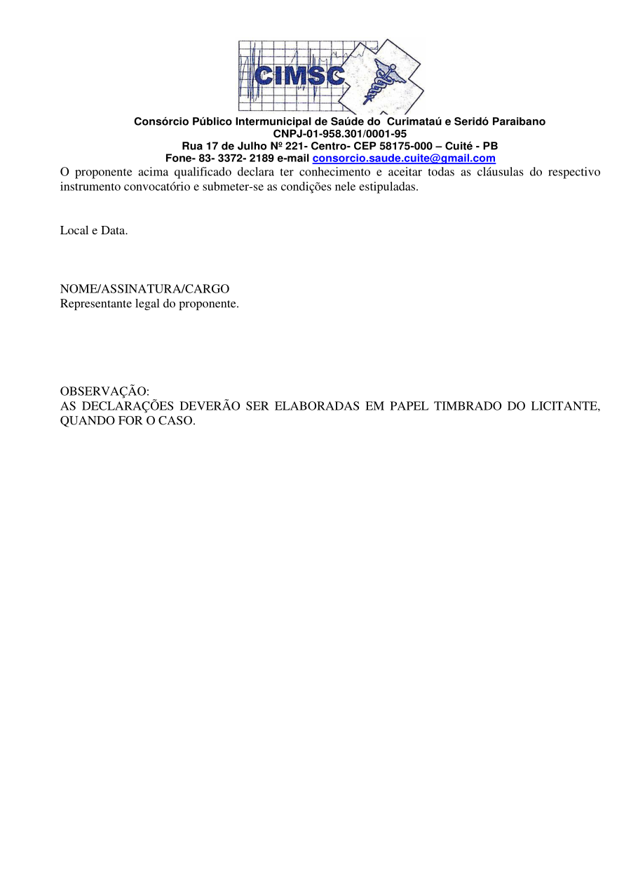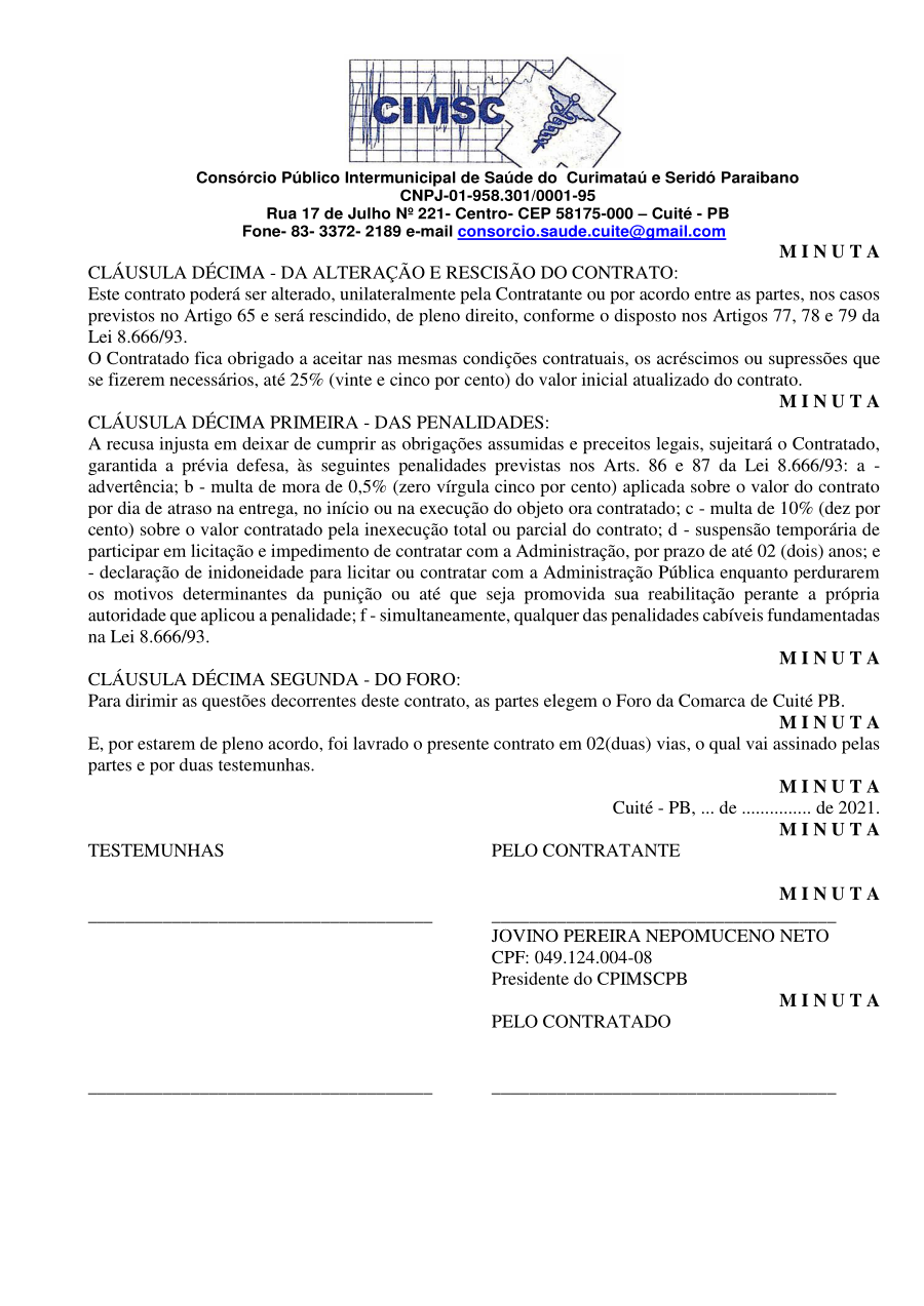 Conforme MP n° 2.200-2 de 24/08/2001, que institui a infraestrutura de chaves Públicas. Matéria Publicada no Diário Oficial do Consórcio Intermunicipal de Saúde do Curimataú e Seridó Paraibano/PB no dia - Edição 00328.