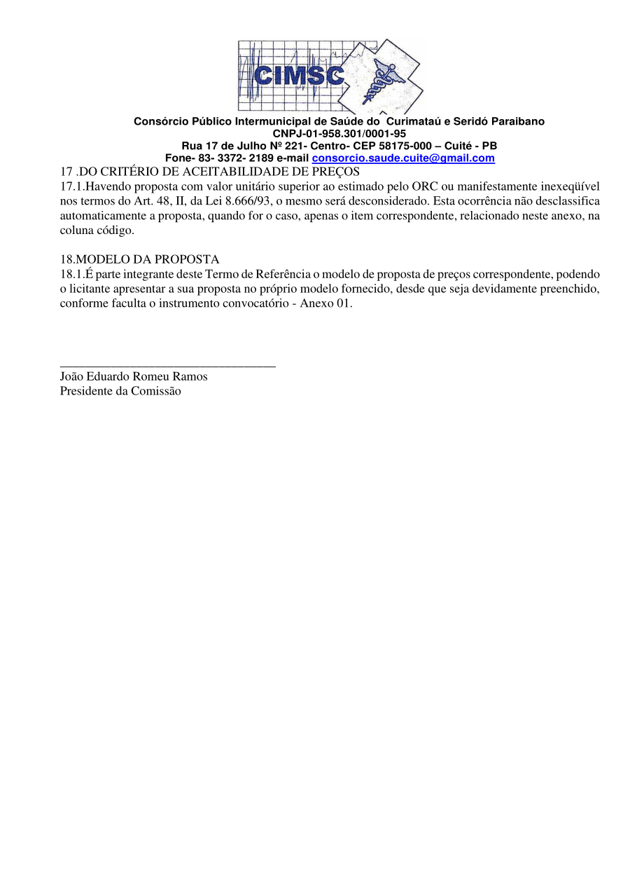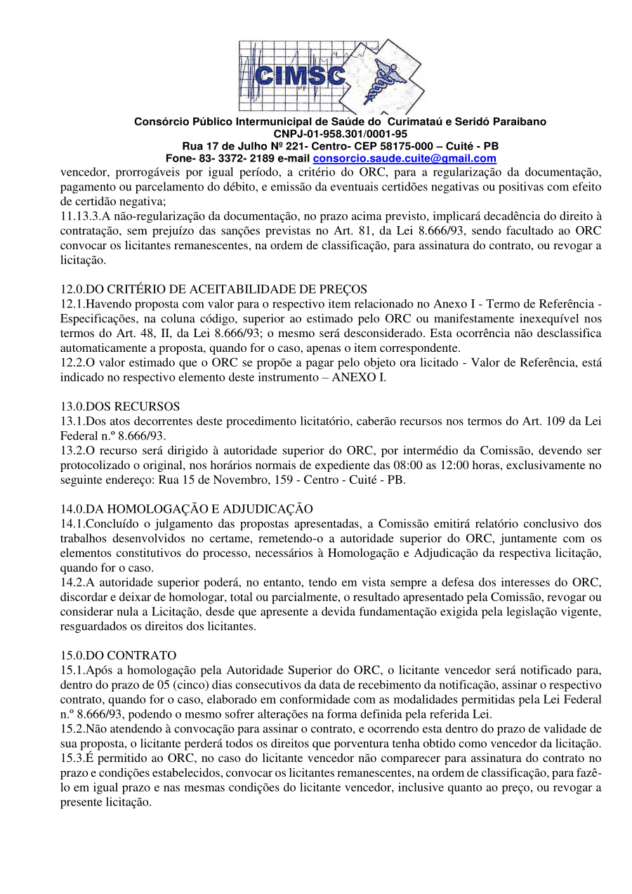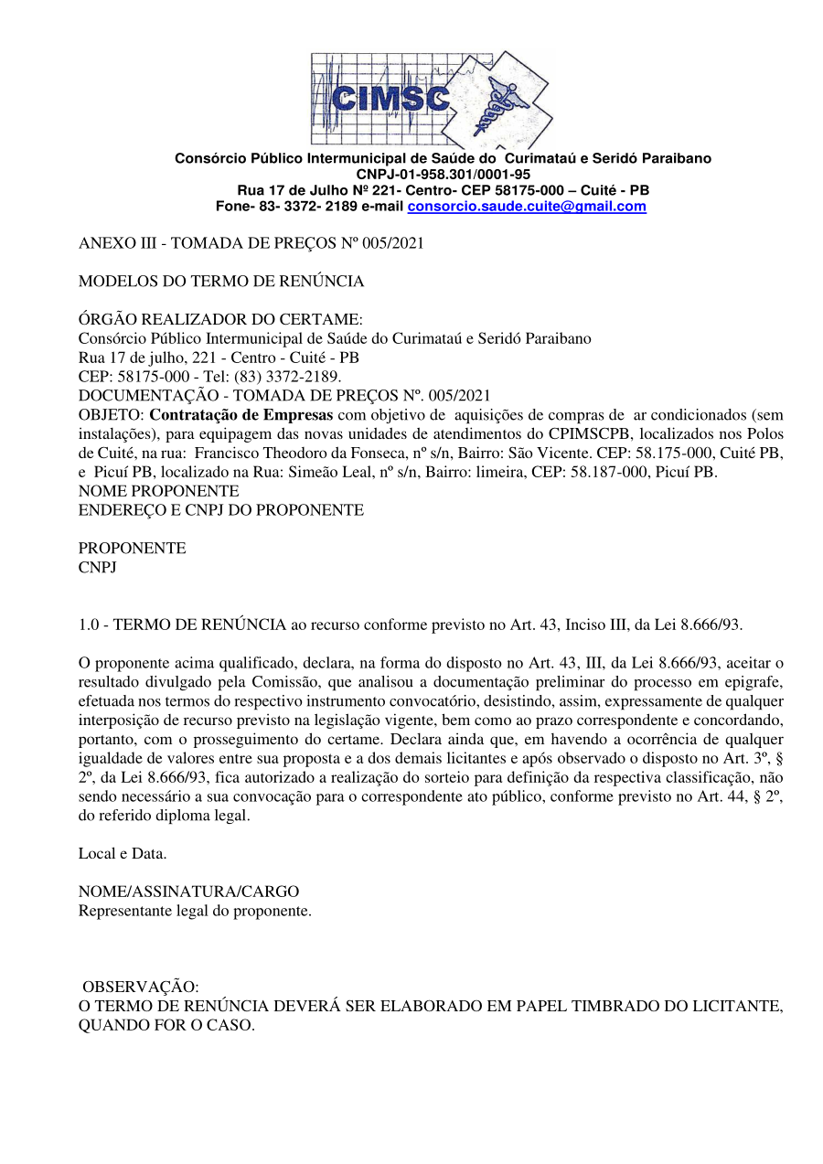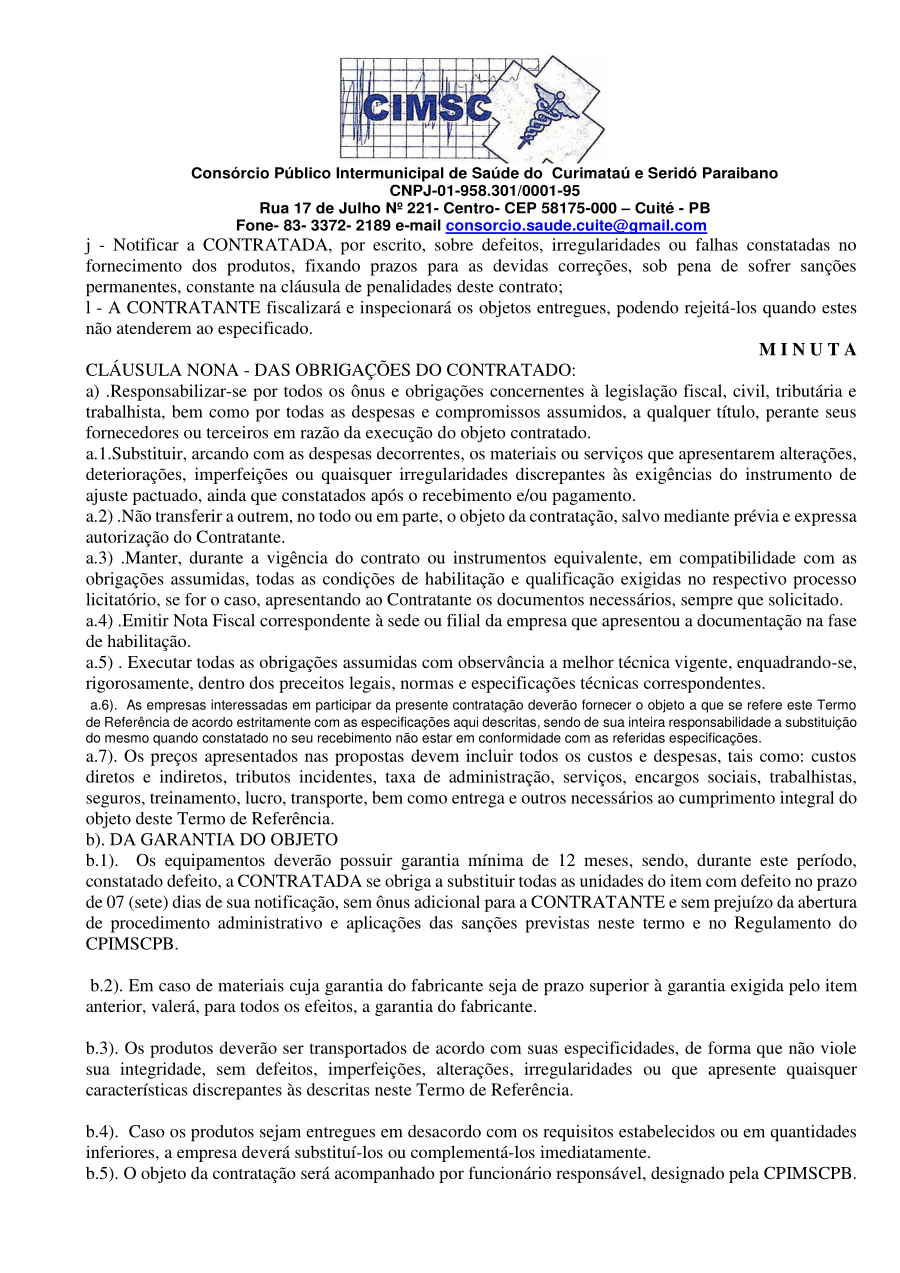 Conforme MP n° 2.200-2 de 24/08/2001, que institui a infraestrutura de chaves Públicas. Matéria Publicada no Diário Oficial do Consórcio Intermunicipal de Saúde do Curimataú e Seridó Paraibano/PB no dia - Edição 00328.