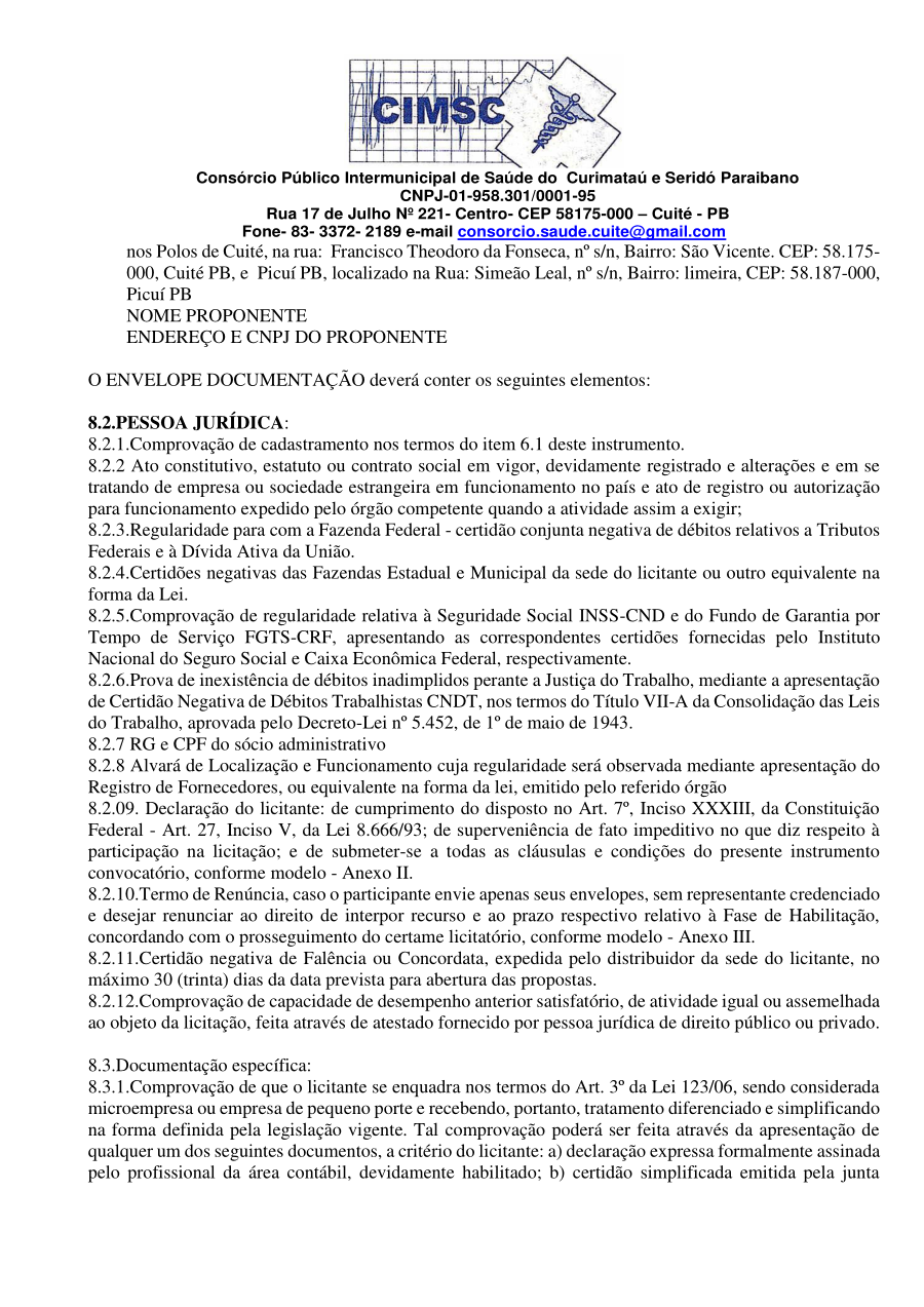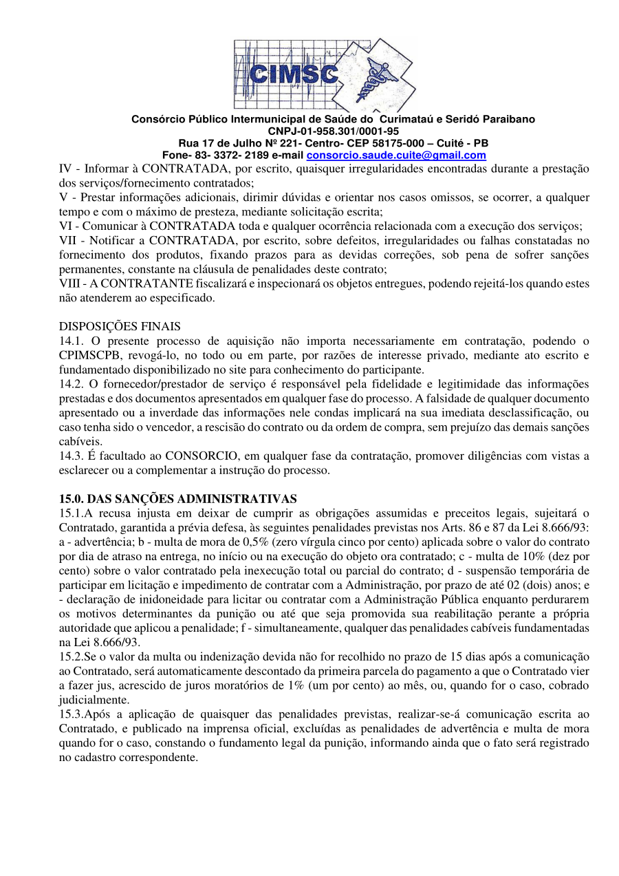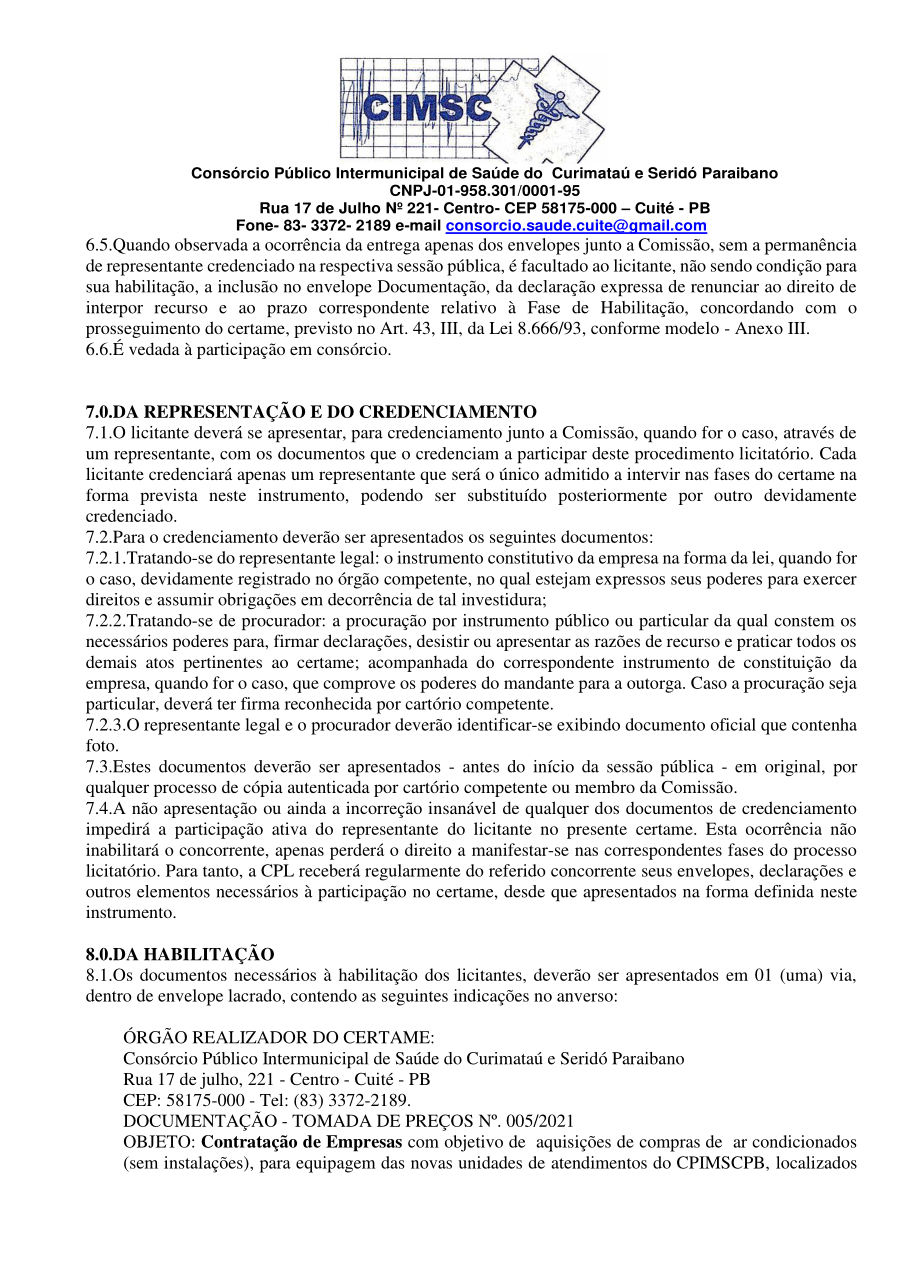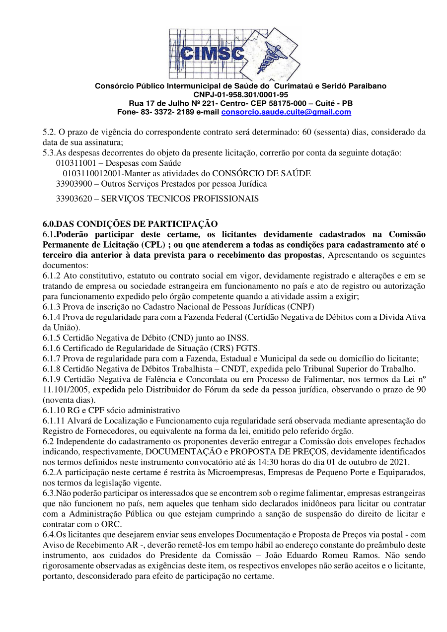 Conforme MP n° 2.200-2 de 24/08/2001, que institui a infraestrutura de chaves Públicas. Matéria Publicada no Diário Oficial do Consórcio Intermunicipal de Saúde do Curimataú e Seridó Paraibano/PB no dia - Edição 00328.