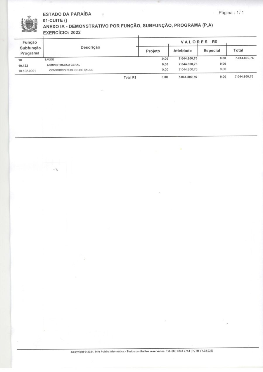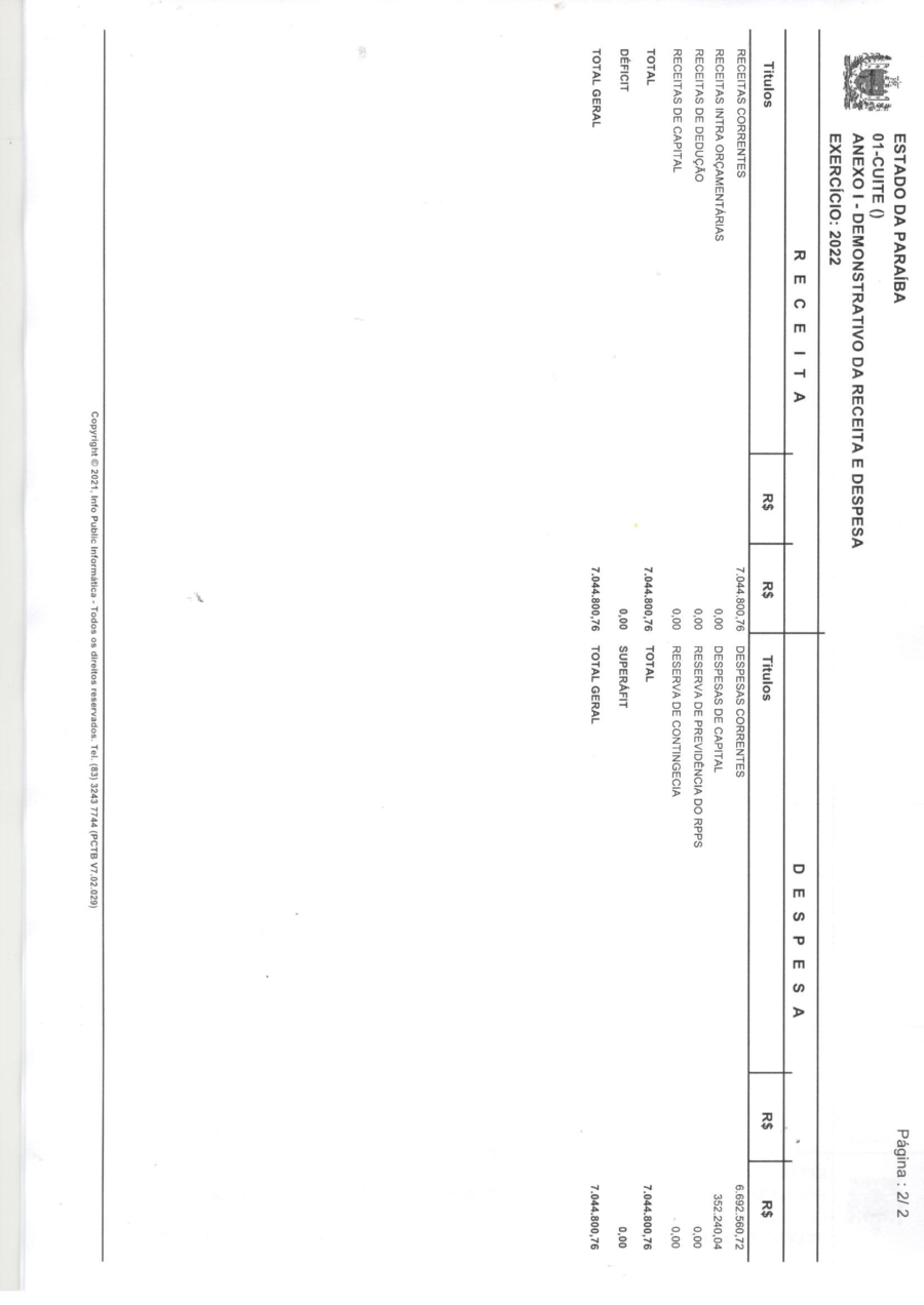 ORÇAMENTO 2022 - N° 001/2021