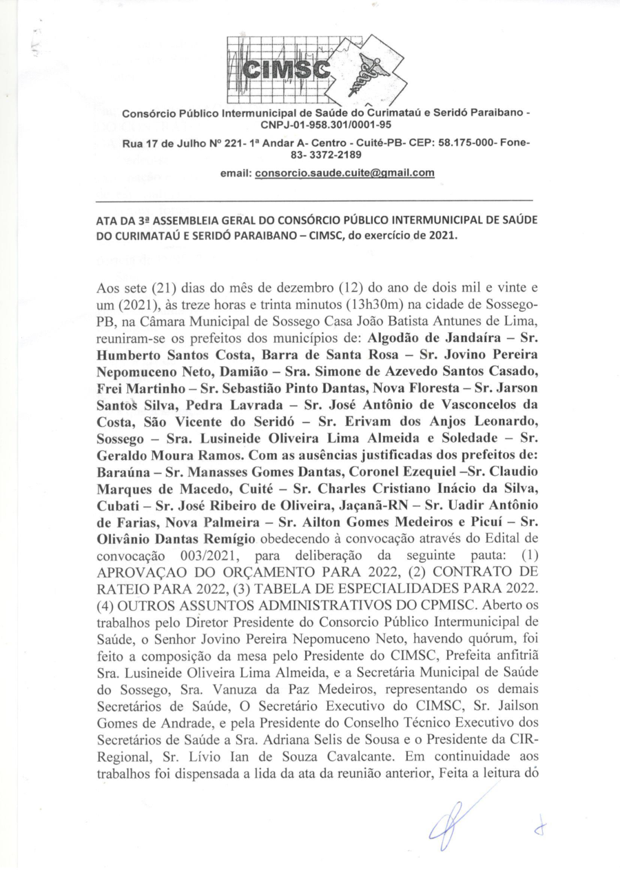 ATA DA 3° ASSEMBLEIA GERAL - 21 DE DEZEMBRO 2021