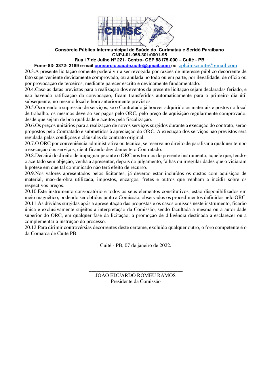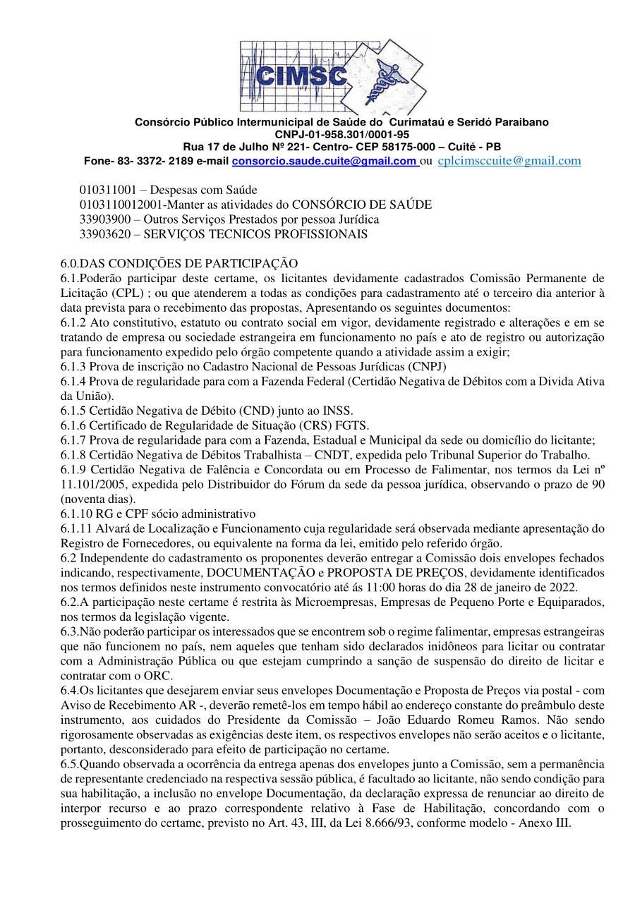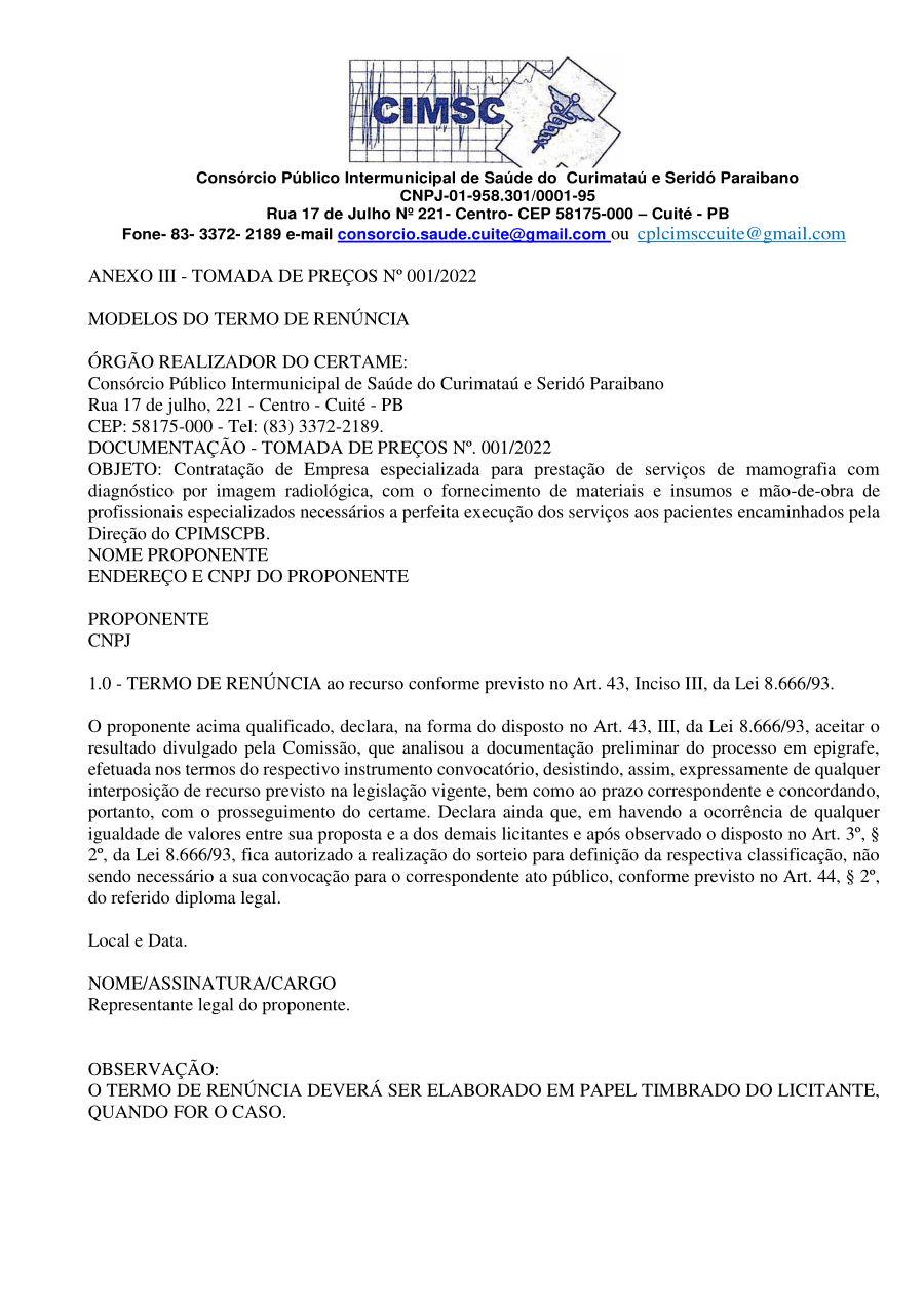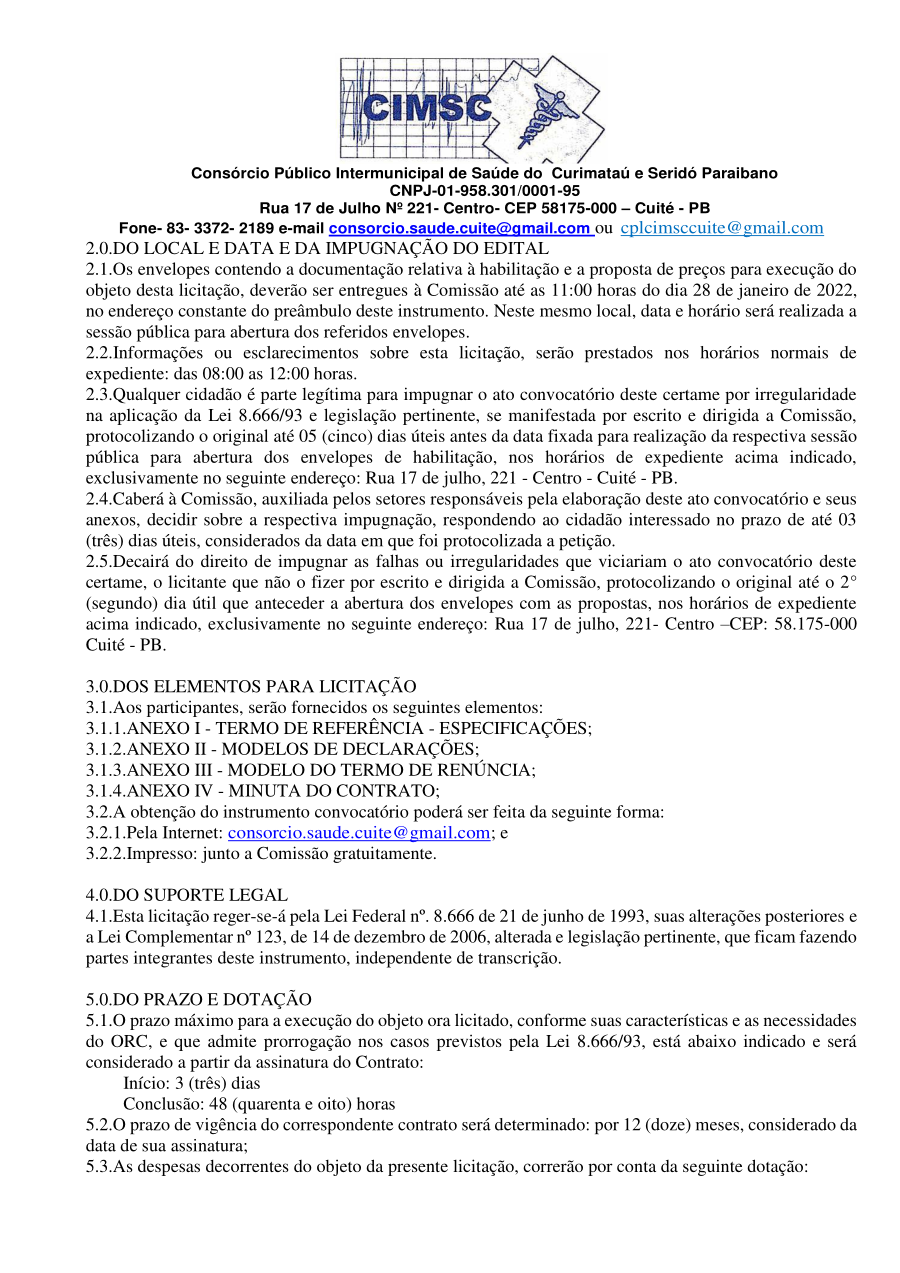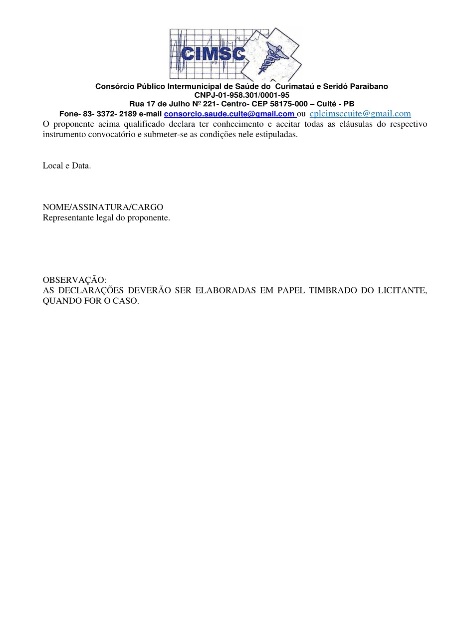 Conforme MP n° 2.200-2 de 24/08/2001, que institui a infraestrutura de chaves Públicas. Matéria Publicada no Diário Oficial do Consórcio Intermunicipal de Saúde do Curimataú e Seridó Paraibano/PB no dia - Edição 00405.