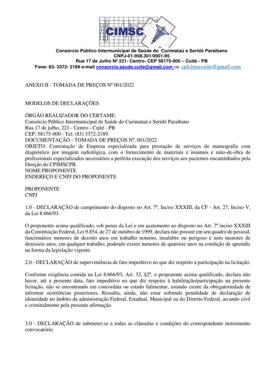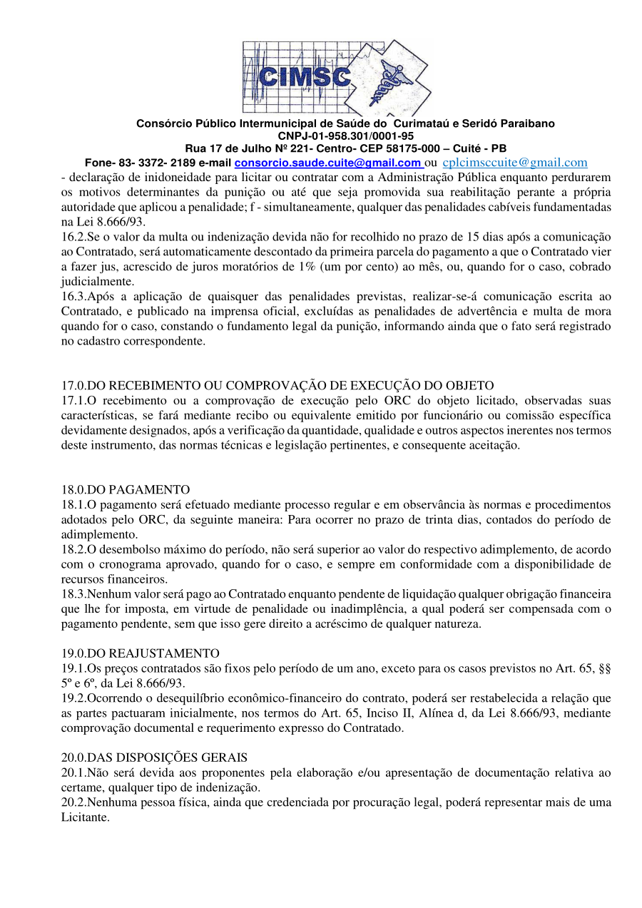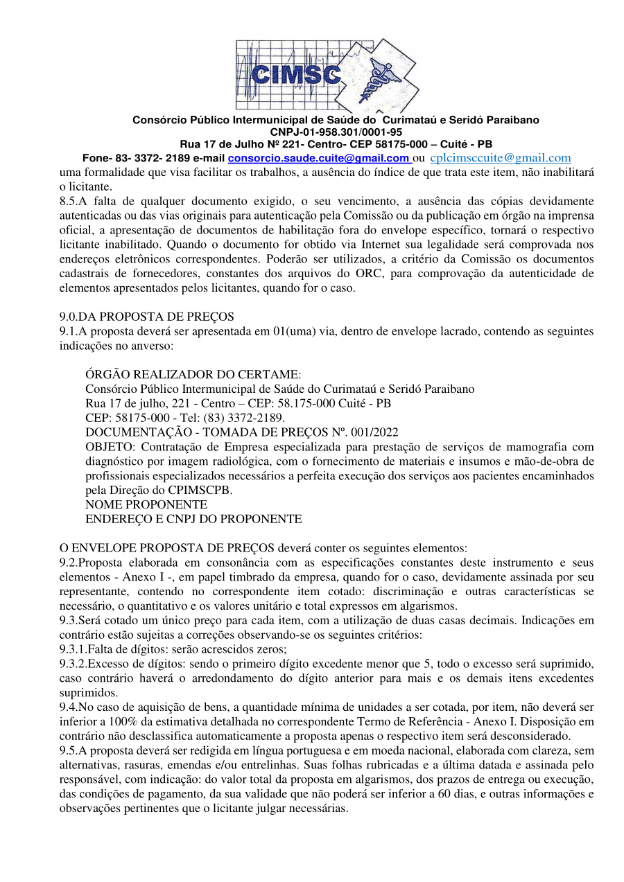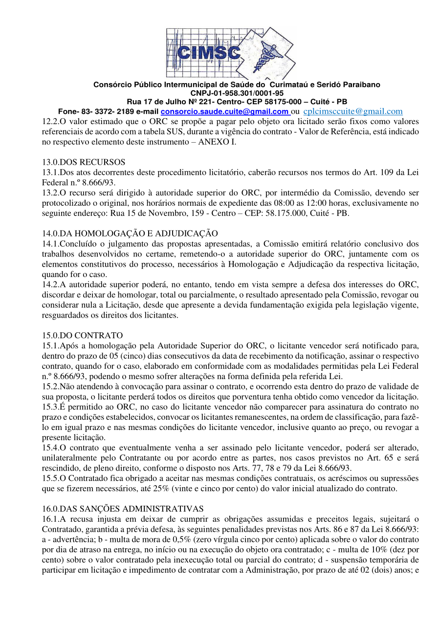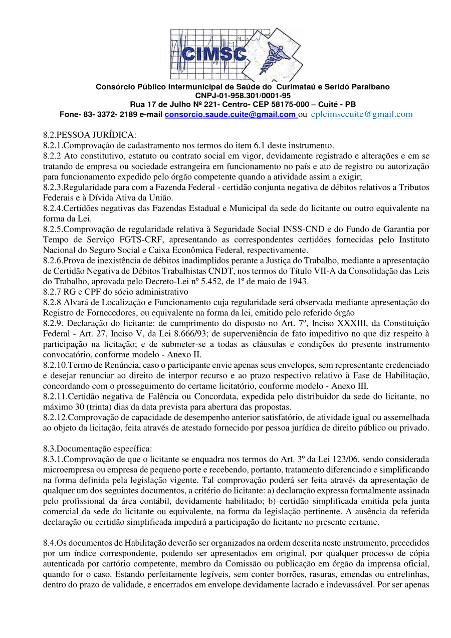 Conforme MP n° 2.200-2 de 24/08/2001, que institui a infraestrutura de chaves Públicas. Matéria Publicada no Diário Oficial do Consórcio Intermunicipal de Saúde do Curimataú e Seridó Paraibano/PB no dia - Edição 00405.