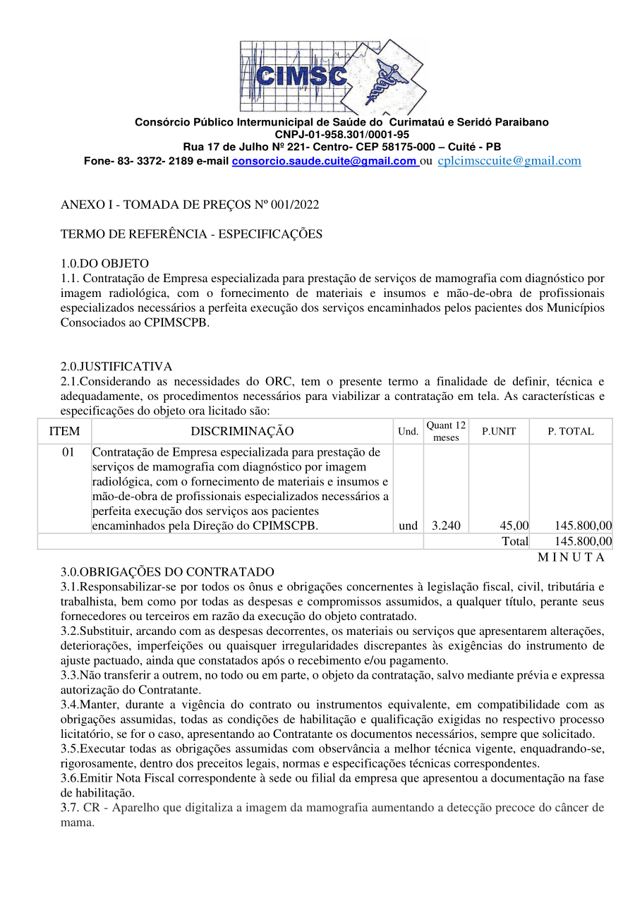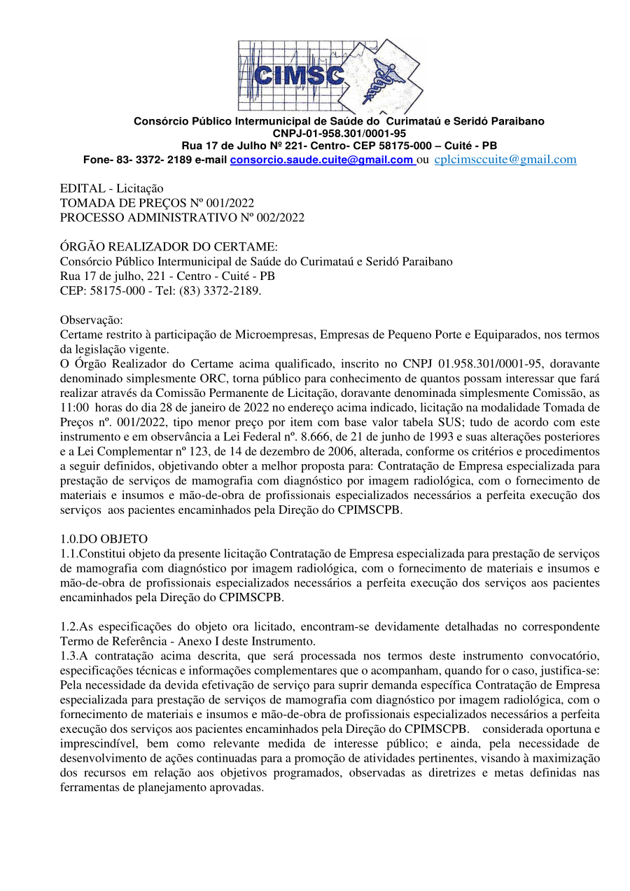EDITAL DE LICITAÇÃO - TOMADA DE PREÇOS Nº 0001/2022