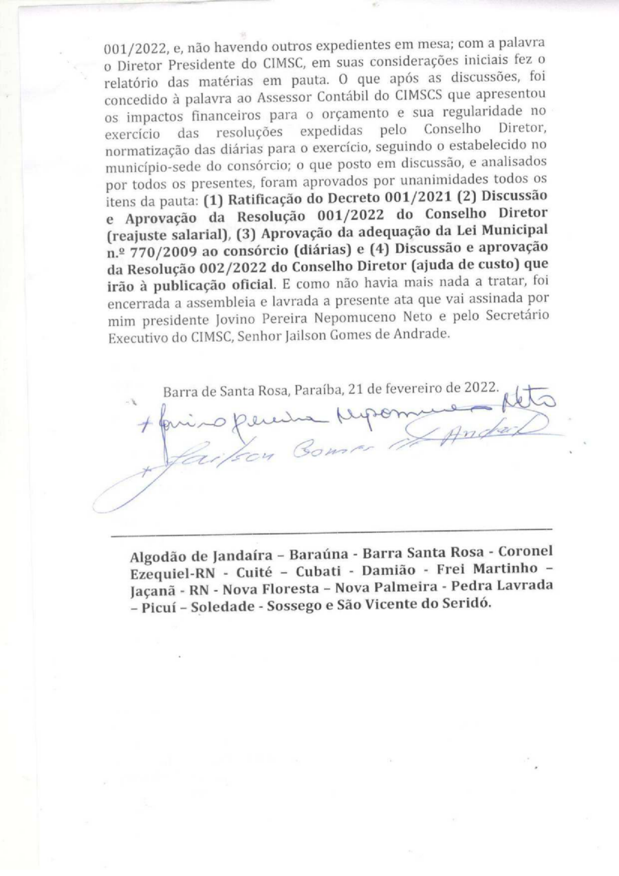 Conforme MP n° 2.200-2 de 24/08/2001, que institui a infraestrutura de chaves Públicas. Matéria Publicada no Diário Oficial do Consórcio Intermunicipal de Saúde do Curimataú e Seridó Paraibano/PB no dia - Edição 00433.
